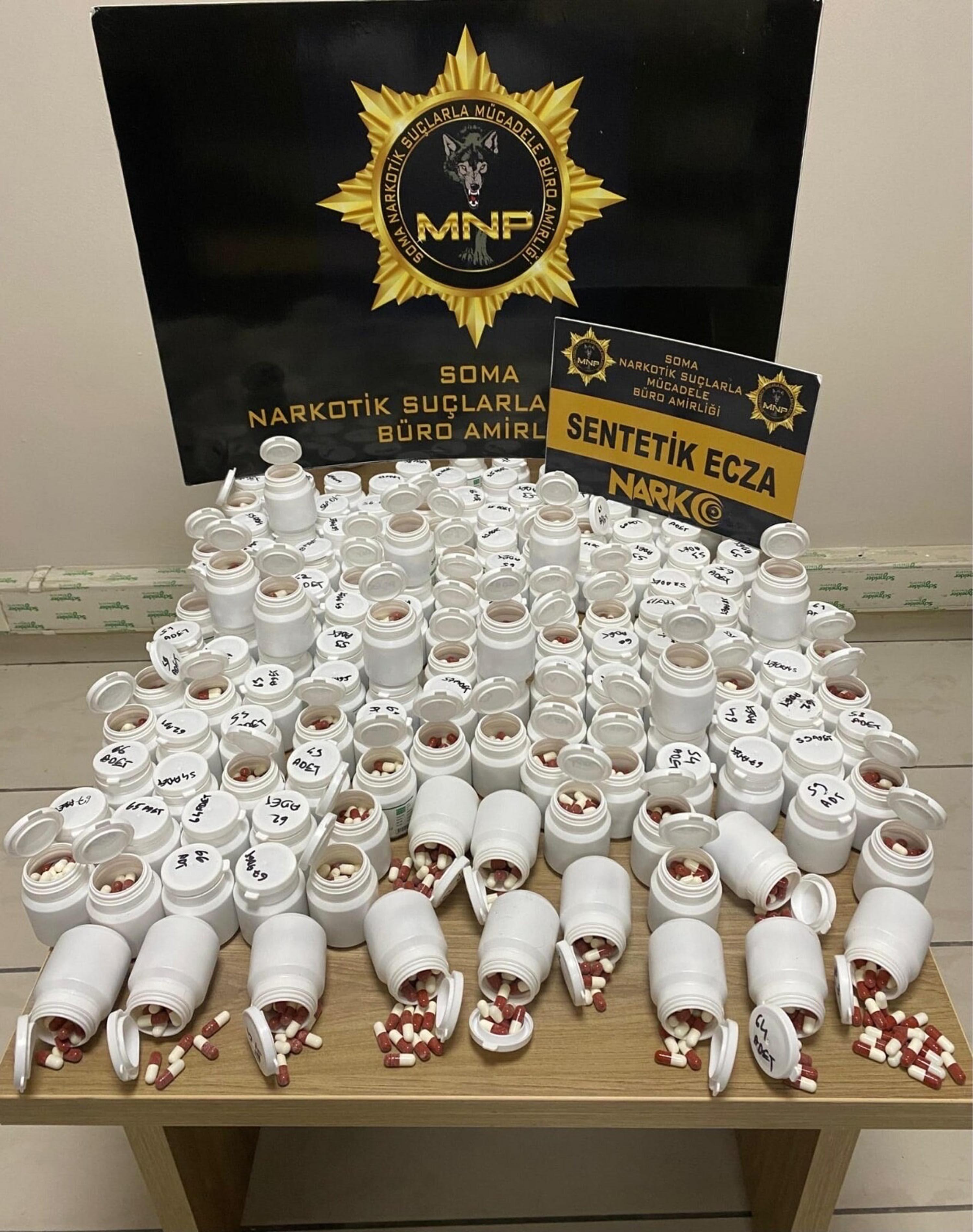 Manisa İl Emniyet Müdürlüğü Narkotik Suçlarla Mücadele Şube Müdürlüğü koordinesinde, Turgutlu ve Soma Narkotik Suçlarla Mücadele Büro Amirliği ekipleri tarafından uyuşturucu ve uyarıcı madde imal edip, satan kişilere yönelik operasyon düzenlendi. Operasyonda, İ.A. (41), B.V. (23), A.Y. (21), F.D. (17), Z.G. (24), B.B.K. (19), A.K. (25), R.A. (17) ve C.Ö. (22) gözaltına alındı. Şüphelilerin ev ve otomobillerindeki aramalarda 29 bin 94 sentetik hap, 1 tabanca ve 7 adet 7.65 mm çapında mermi ile birlikte uyuşturucu satışından elde edildiği belirtilen 70 bin TL ele geçirildi.