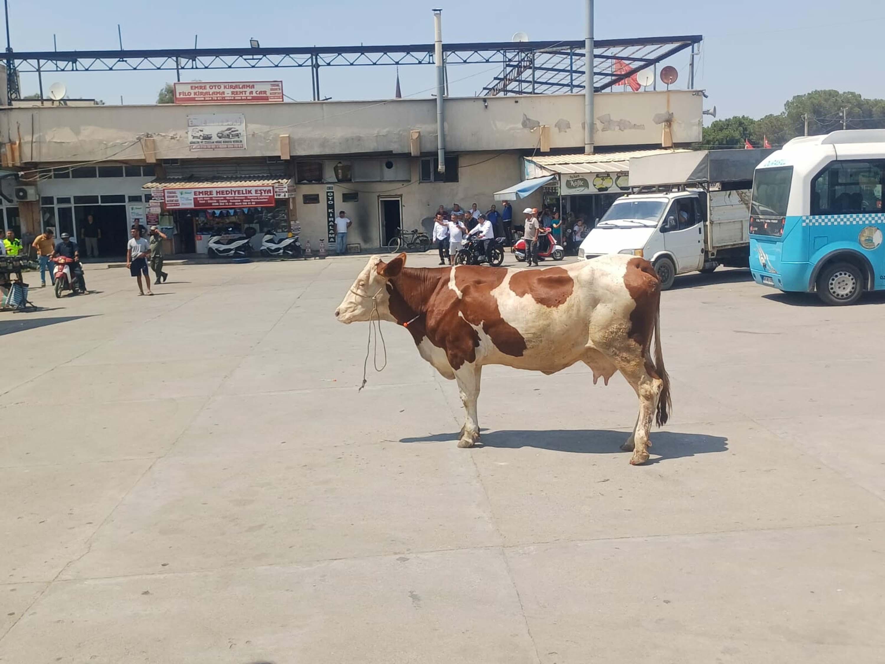 Emre SAÇLI/SALİHLİ (Manisa), (DHA)- MANİSA'nın Salihli ilçesinde kesim için getirildiği mezbahadan kaçan inek ortalığı birbirine kattı. İnek, uzun uğraşlar sonucu otogarda yakalandı.