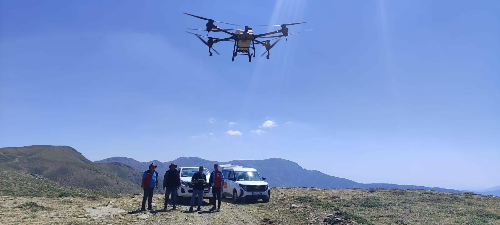 Emre SAÇLI / SALİHLİ, (Manisa), (DHA)-MANİSA'nın Salihli ilçesinde bitkisel üretimde zararlı olan tarla çekirgelerine karşı Bozdağların zirvesinde havadan ve karadan ilaçlama çalışması gerçekleştirildi.