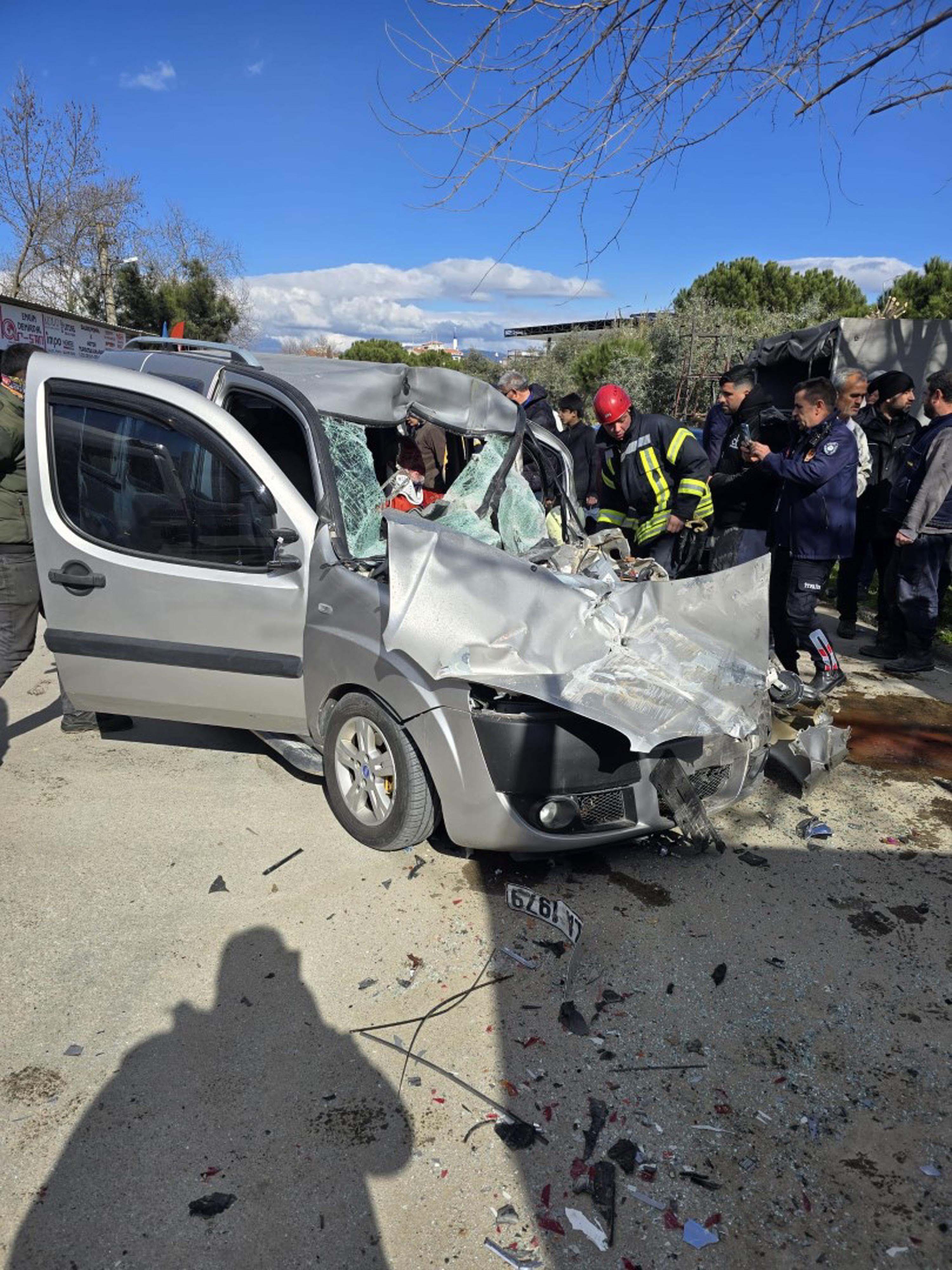 Hafif ticari araç, park halindeki kamyona çarptı; sürücü ile yaya yaralandı