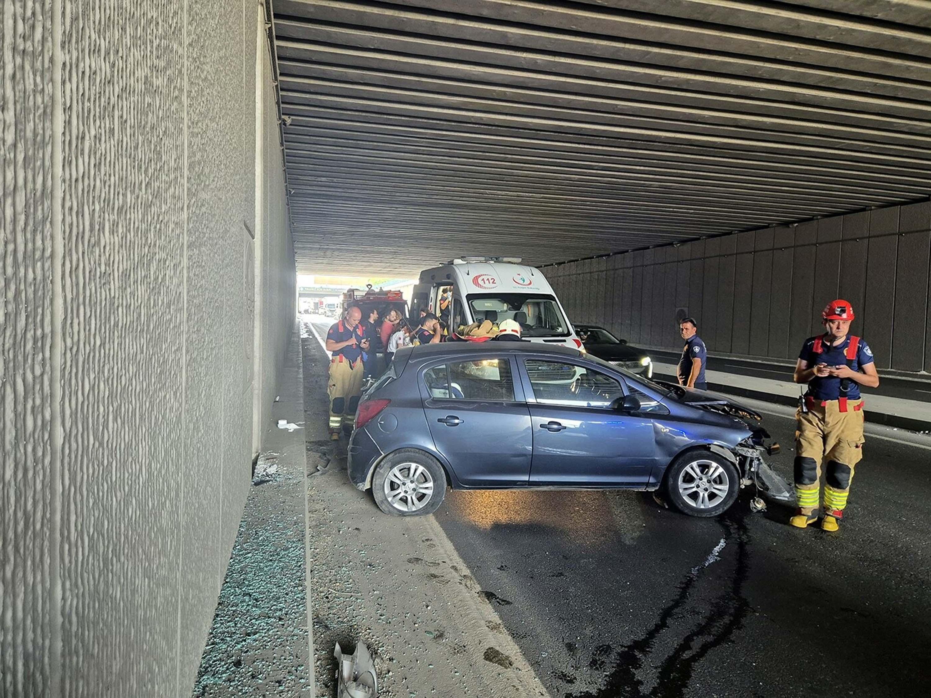 Lastiği patlayan otomobil tünel duvarına çarptı; 3'ü çocuk 5 yaralı