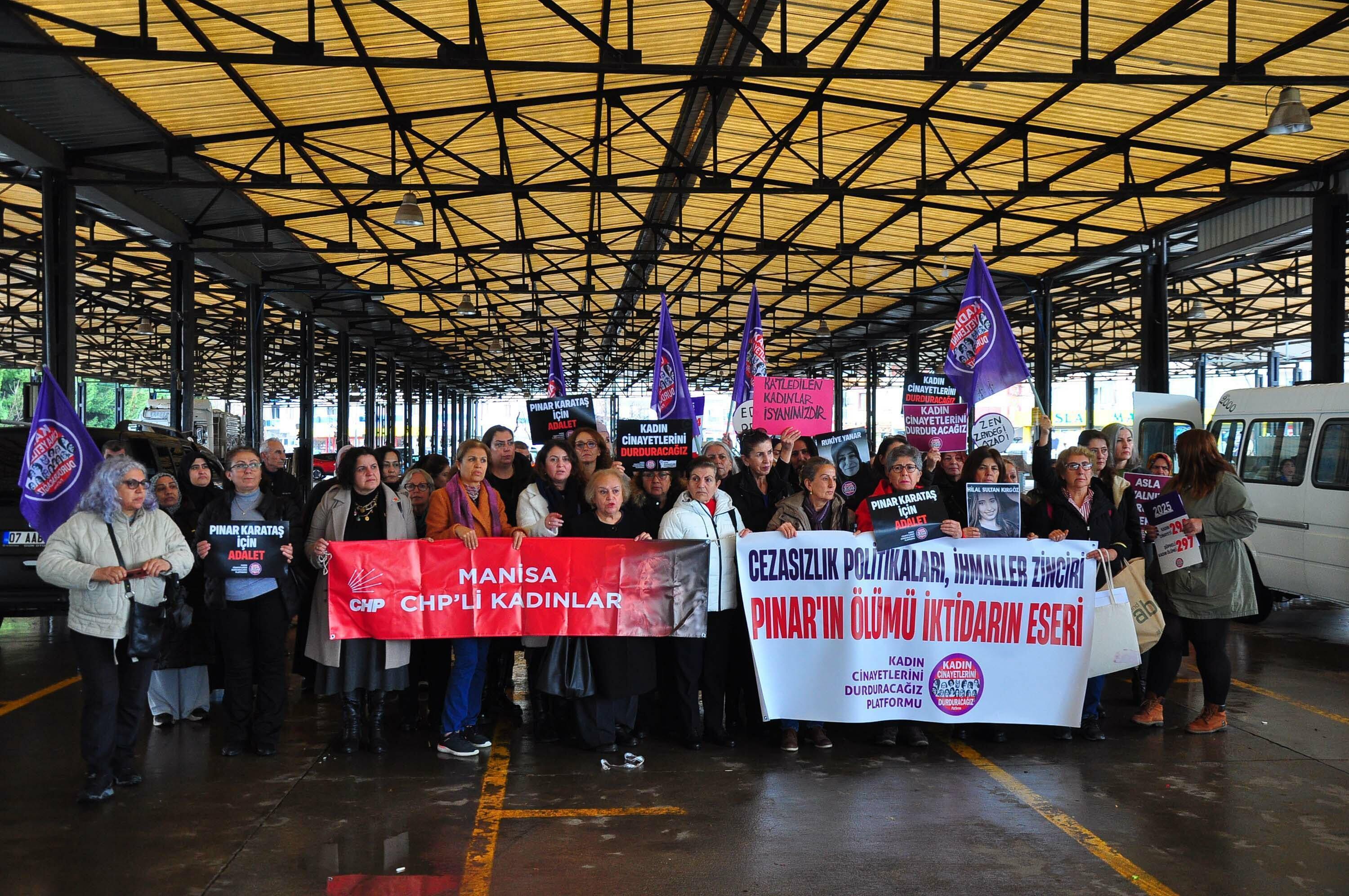 Manisa'da Kadın Cinayetlerini Durduracağız Platformu öncülüğünde bugün mahallede kurulan semt pazarı alanında toplanan kadınlar, ‘Asla yalnız yürümeyeceksin’ sloganları eşliğinde yürüyerek Pınar Karataş'ın öldürüldüğü noktaya geldi. Burada yapılan basın açıklamasına CHP Manisa Milletvekili Ahmet Vehbi Bakırlıoğlu da dahil olmak üzere hiçbir erkeğin katılmasına izin verilmedi.