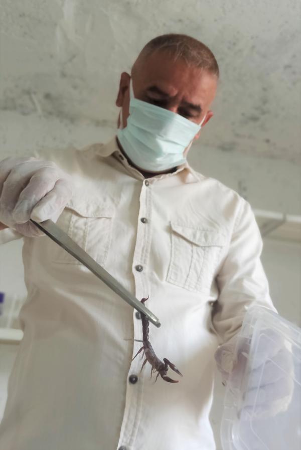 Nezir GÜNEŞ/MARDİN,(DHA)- MARDİN’de yaşayan Sezgin Oral (51), gerekli izinleri aldıktan sonra evinin altında akrep çiftliği kurarak, bölgede yaygın halde bulunan ve kara akrep olarak adlandırılan ‘Androctonus Crassicauda’ cinsi akrebi yetiştirmeye başladı. Elinde şu an 225 akrep bulunan Oral, hem üremelerini sağlıyor hem de onlardan elde ettiği zehri eksi 86 derecede saklayarak belirli periyotlarla ilaç ve kozmetik firmalarına gönderiyor. Oral, "Akrep sayısını 50 bine çıkarmayı hedefliyorum. Ancak bu şekilde bir yılda yapacağımız sağımlarla bir litre akrep zehrine ulaşabiliriz” dedi.