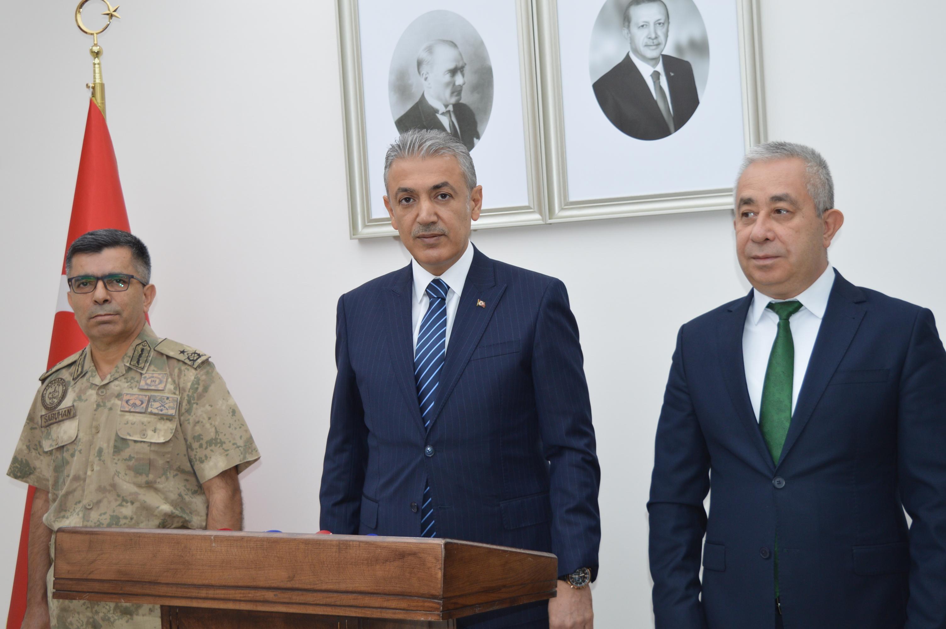 Vali Tuncay Akkoyun, İl Jandarma Komutanı Tuğgeneral Tahsin Saruhan ve İl Emniyet Müdür Vekili Ali Hakan Alev ile valilikte düzenlenen ‘Asayiş ve Güvenlik Değerlendirme Toplantısı’na katıldı. Toplantı sonrası açıklamalarda bulunan Vali Tuncay Akkoyun, emniyet ve jandarma teşkilatını özverili çalışmalarından dolayı tebrik etti. Milletin birlik ve beraberliğine kasteden bölücü terör örgütlerine karşı kararlı mücadelelerinin devam ettiğini ifade eden Vali Akkoyun, “Ağustos ayında Mardin’de, bölücü terör örgütü PKK ve FETÖ başta olmak üzere terör örgütlerine yönelik toplam 23 operasyon düzenlenmiştir. Bu operasyonlar sonucunda gözaltına alınan 43 kişiden 8’i tutuklanmıştır” dedi.