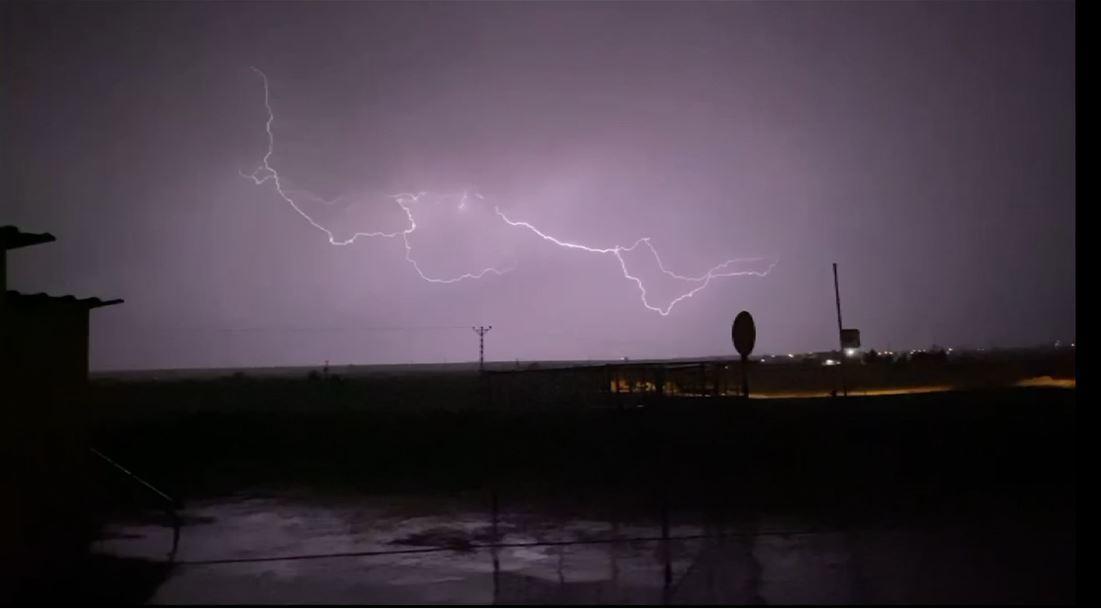 Meteoroloji 15’inci bölge Müdürlüğü’nün uyarılarının ardından, Mardin’de gece saatlerinde sağanak etkili oldu. Sağanakla birlikte peş peşe şimşekler de çaktı. Geceyi aydınlatan şimşekler, kameraya yansıdı. (DHA)