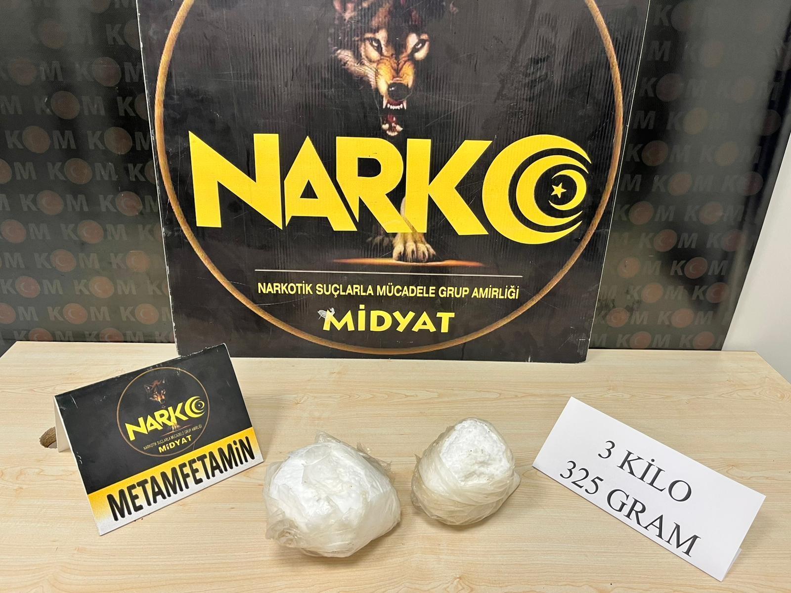 Midyat İlçe Emniyet Müdürlüğü Narkotik Suçlarla Mücadele Büro Amirliği ekiplerinin titizlikle yürüttüğü çalışmalar kapsamında, ilçe genelinde şüpheli bir araç durdurularak arama yapıldı. Gerçekleştirilen aramada, toplam 3 kilo 325 gram metamfetamin ele geçirildi. Operasyonda gözaltına alınan 2 şüpheli şahıs hakkında adli işlem başlatıldı. (DHA)