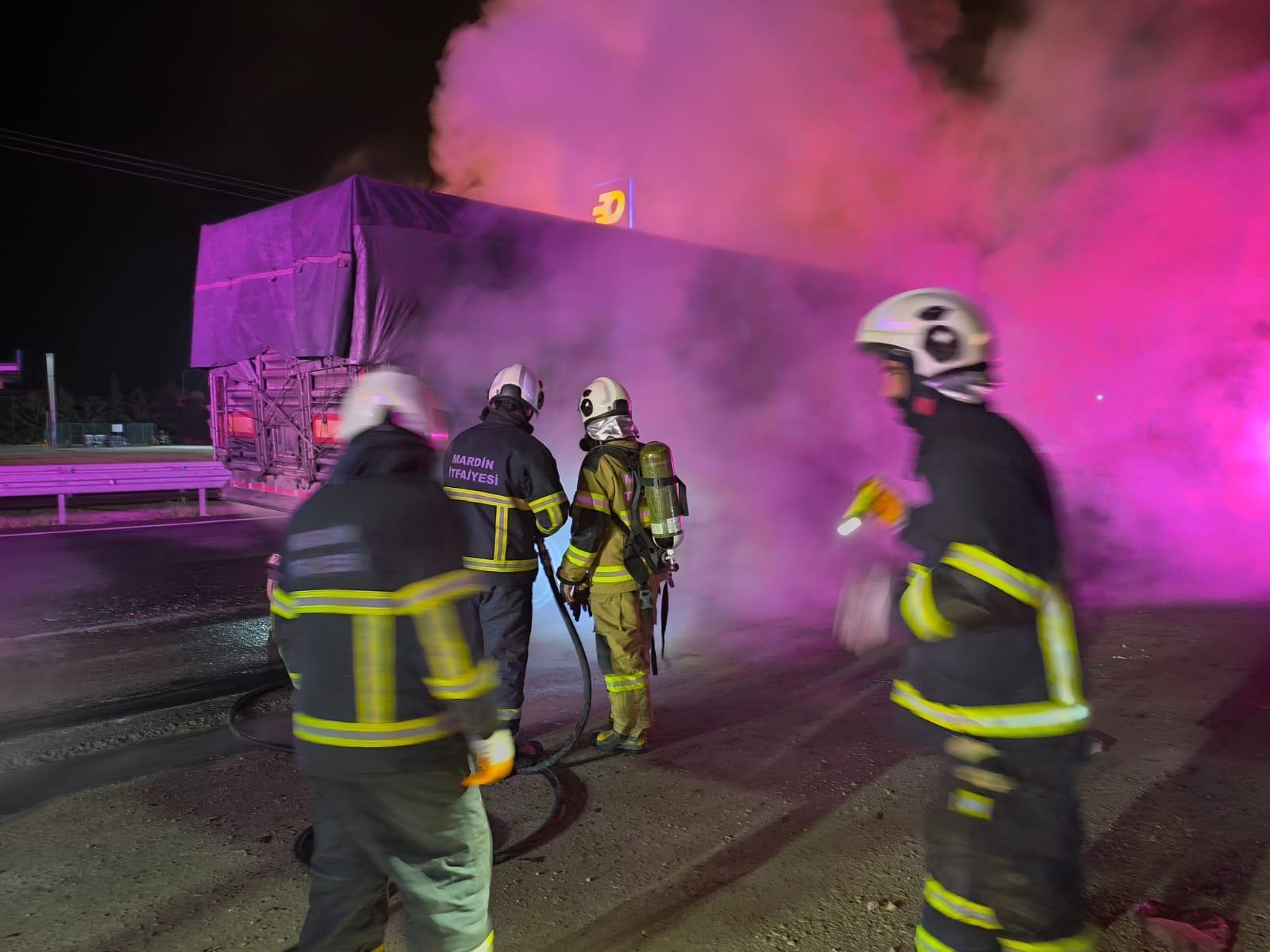 Mardin'de hayvan yemi yüklü TIR'da yangın