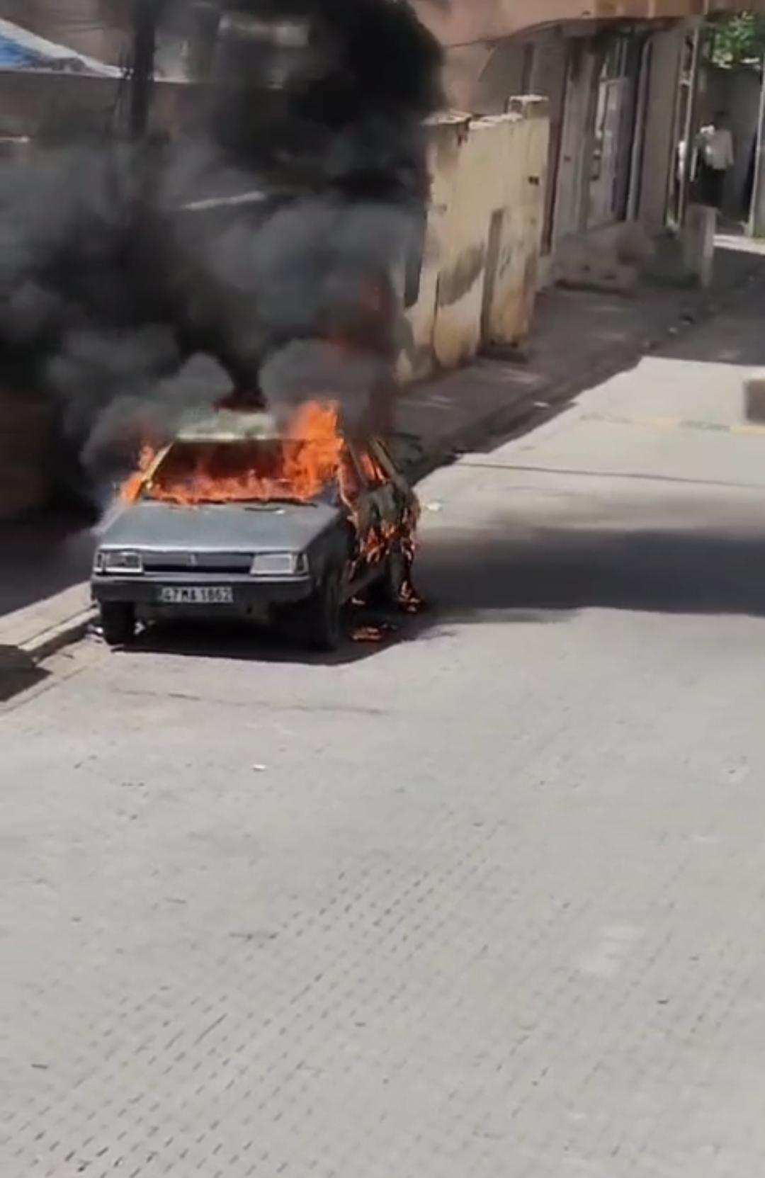 Olay, öğle saatlerinde Kızıltepe ilçesi merkez Tepebaşı Mahallesinde meydana geldi. 47 MA 1862 plakalı otomobil, 635. Sokak'ta park halindeyken alev alarak yanmaya başladı. İhbarla olay yerine itfaiye ekipleri sevk edildi. Ekiplerin müdahalesi ile yangın söndürülürken, otomobil kullanılmaz hale geldi. Yangının çıkış sebebi araştırılıyor. (DHA)