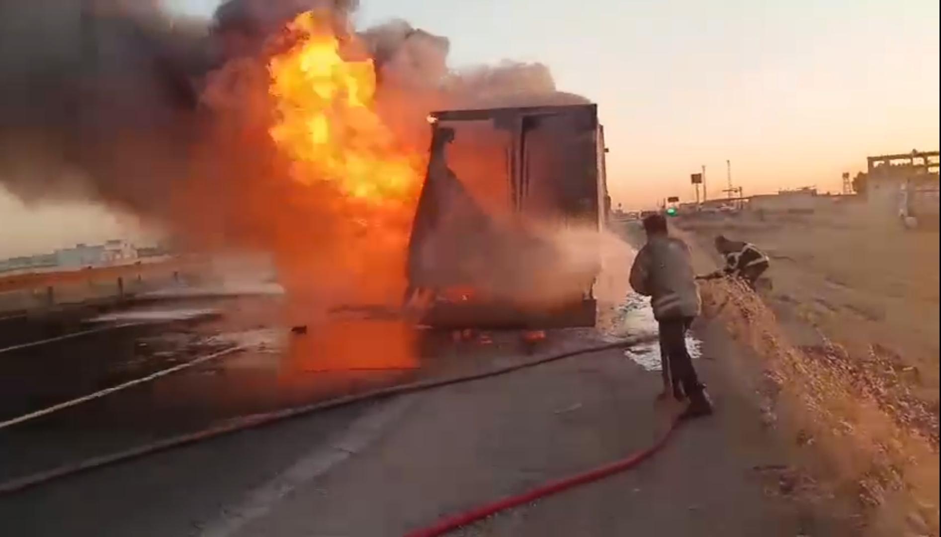 Mardin'de seyir halindeki kamyon alev topuna döndü; o anlar kamerada