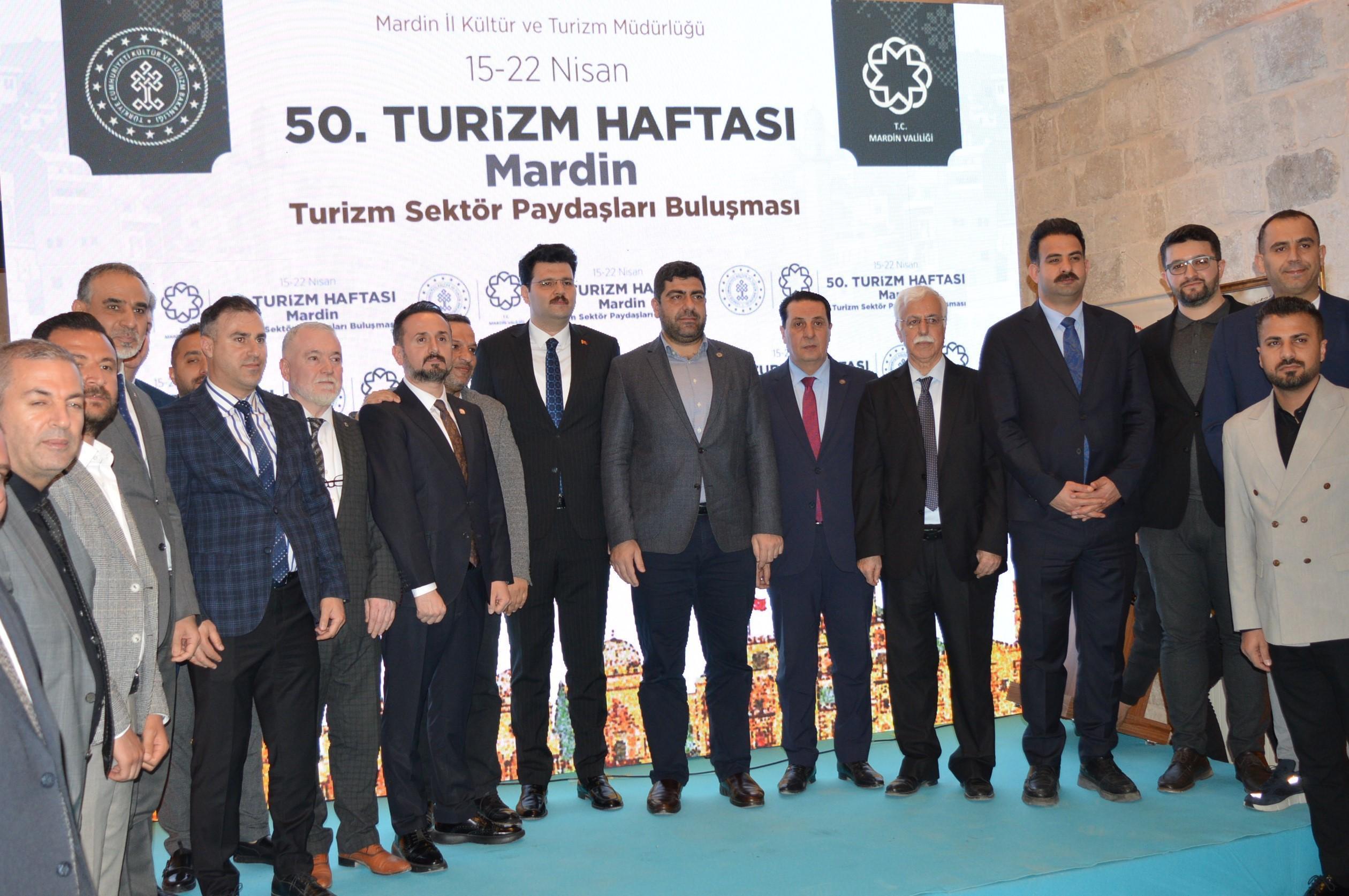 Mardin Valiliği ile Kültür ve Turizm İl Müdürlüğü tarafından düzenlenen 50’nci Turizm Haftası etkinlikleri başladı. Kültür Turizm İl Müdürlüğü’nde yapılan ‘Turizm Sektör Paydaşları Buluşması’na Vali Yardımcısı Hasan Kurt, Kültür ve Turizm İl Müdürü Vural Güngör, AK Parti İl Başkanı Mehmet Uncu, Turizm ve Otelciler Derneği Başkanı Özgür Azad Gürgör, Mardin Turizm İşletmeleri Derneği Başkanı Aslan Paşaoğlu ve çok sayıda davetli katıldı. Program saygı duruşu bulunulması ve İstiklal Marşı’nın okunmasıyla başladı.