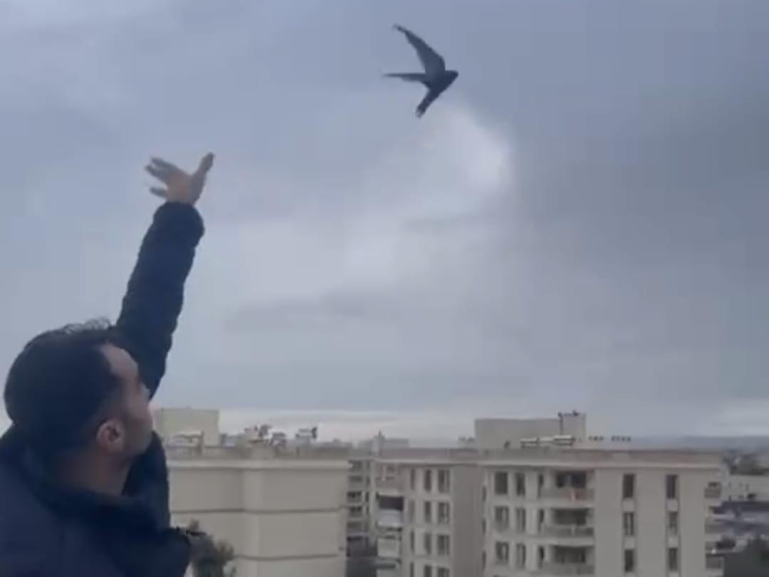 Nusaybin ilçesi Fırat Mahallesi’nde oturan Devran İnan’ın evine giren ebabil kuşunun bitkin olduğu ve uçamadığı fark edildi. İnan, kuşu muhafaza altına alarak bir süre dinlenmesini sağladı. Bir süre sonra toparlanan ebabil kuşu, İnan tarafından evin damına çıkarıldı. Burada serbest bırakılan kuş, uçarak gözden kayboldu. (DHA)
