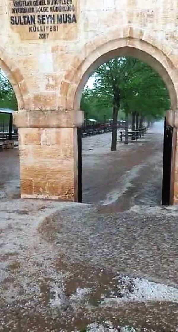 Selim KAYA/MARDİN, (DHA)- MARDİN'in Artuklu ilçesinde, dolu yağışı ve sel nedeniyle meyve bahçeleri zarar gördü, Sultan Şeyhmus Ezzuli Türbesi'nin bahçesi ile bazı evleri de su bastı.