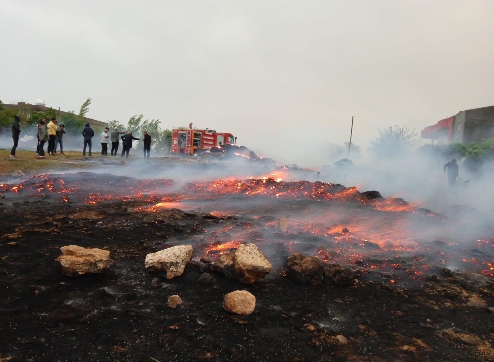 Mardin'de çıkan yangında saman balyaları küle döndü