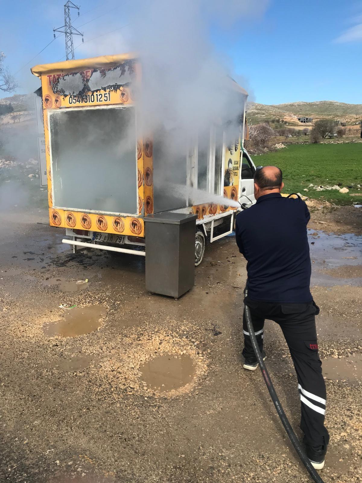 Salih KESKİN/MAZIDAĞI (Mardin), (DHA)- MARDİN’in Mazıdağı ilçesinde park halindeki seyyar tatlıcı panelvanında çıkan yangın, itfaiye ekiplerince söndürüldü.