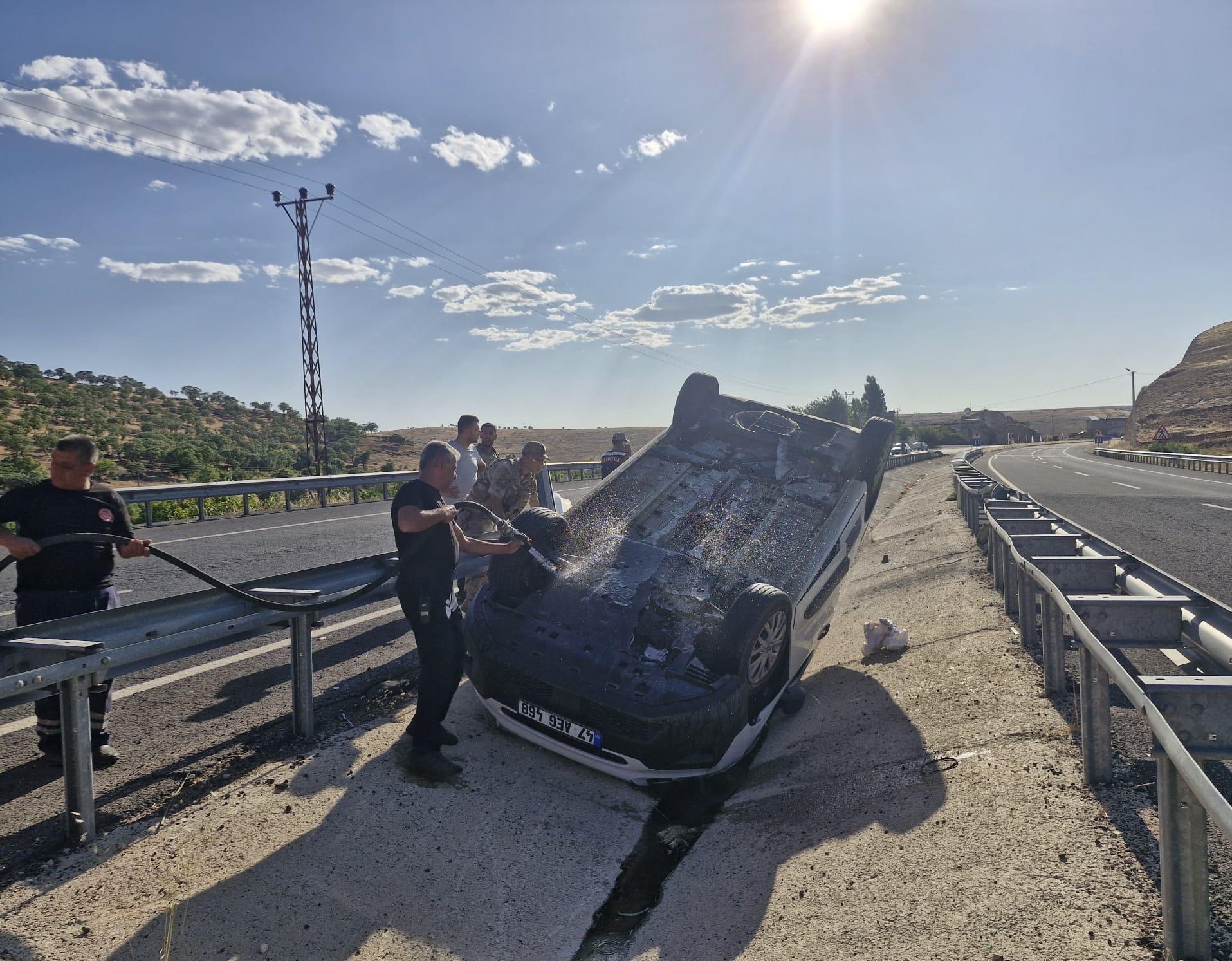 Mardin'de, ters dönen otomobildeki 3 kişi yaralandı