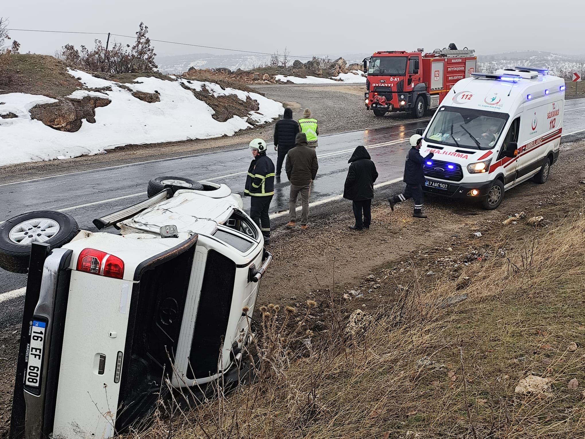 Mardin’de şarampole devrilen kamyonetin sürücüsü yaralandı