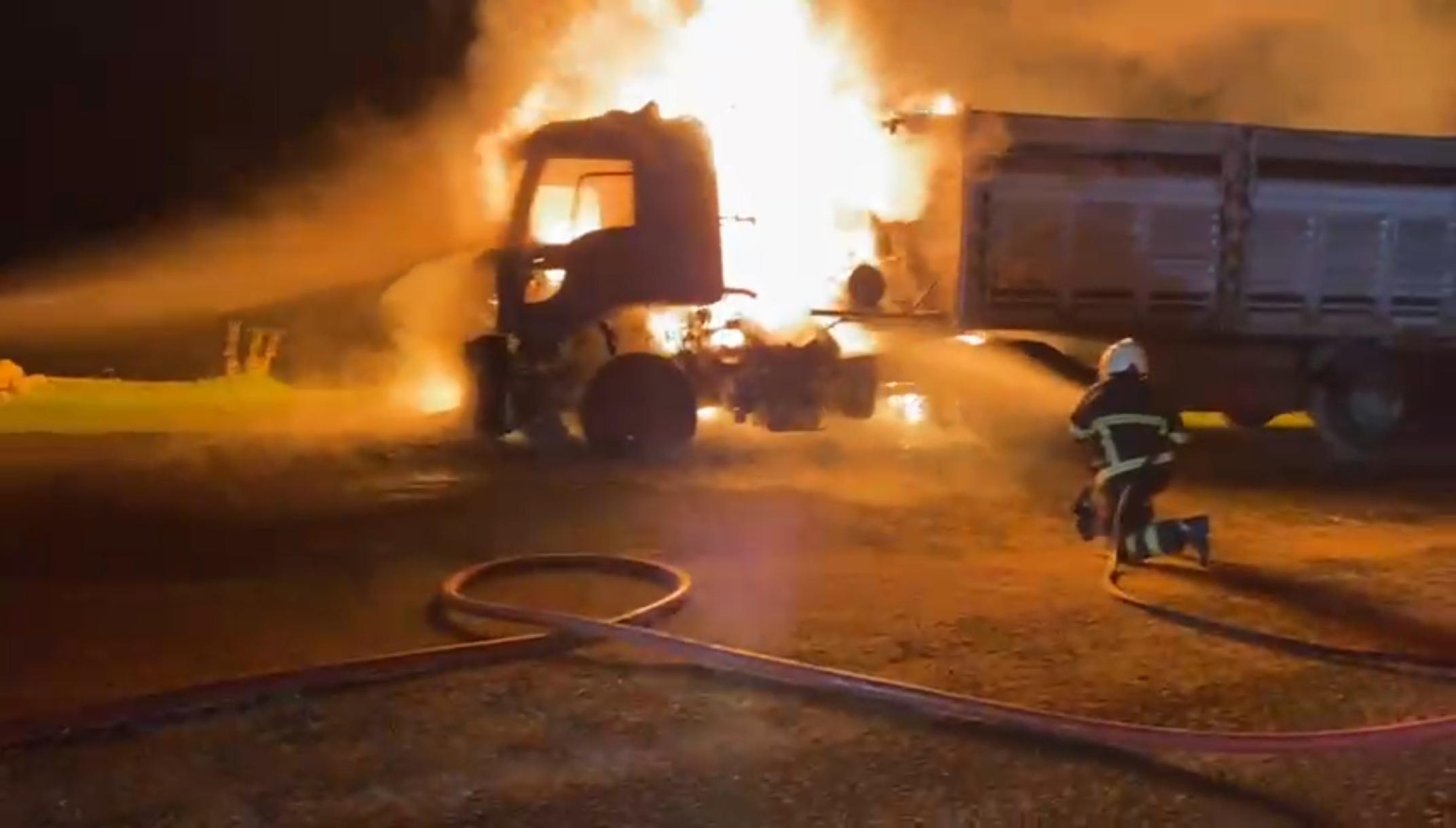 Salih KESKİN/YEŞİLLİ (Mardin), (DHA)- MARDİN’in Yeşilli ilçesinde seyir halindeki TIR’da çıkan yangın, itfaiye ekiplerinin müdahalesiyle söndürüldü, araç kullanılamaz hale geldi.
