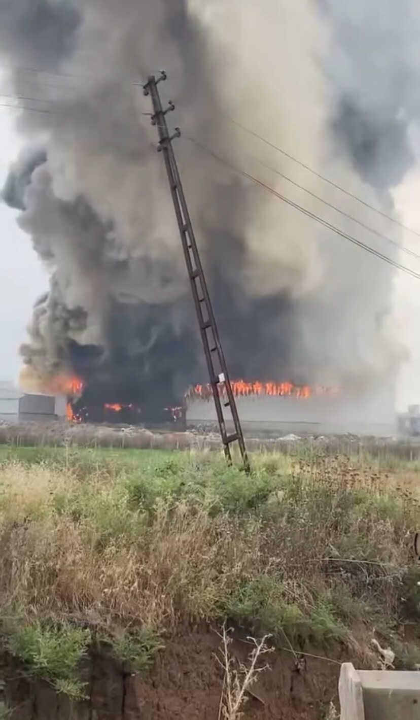 Akdeniz ilçesinde yer alan Tırmıl Sanayi Sitesi içindeki pamuk deposunda, sabah saatlerinde yangın çıktı. Henüz bilinmeyen bir nedenle çıkan yangına, itfaiye ekiplerince müdahale ediliyor. Ekipler, alevlerin büyümemesi ve diğer depolara sıçramaması için yoğun önlem aldı. (DHA)