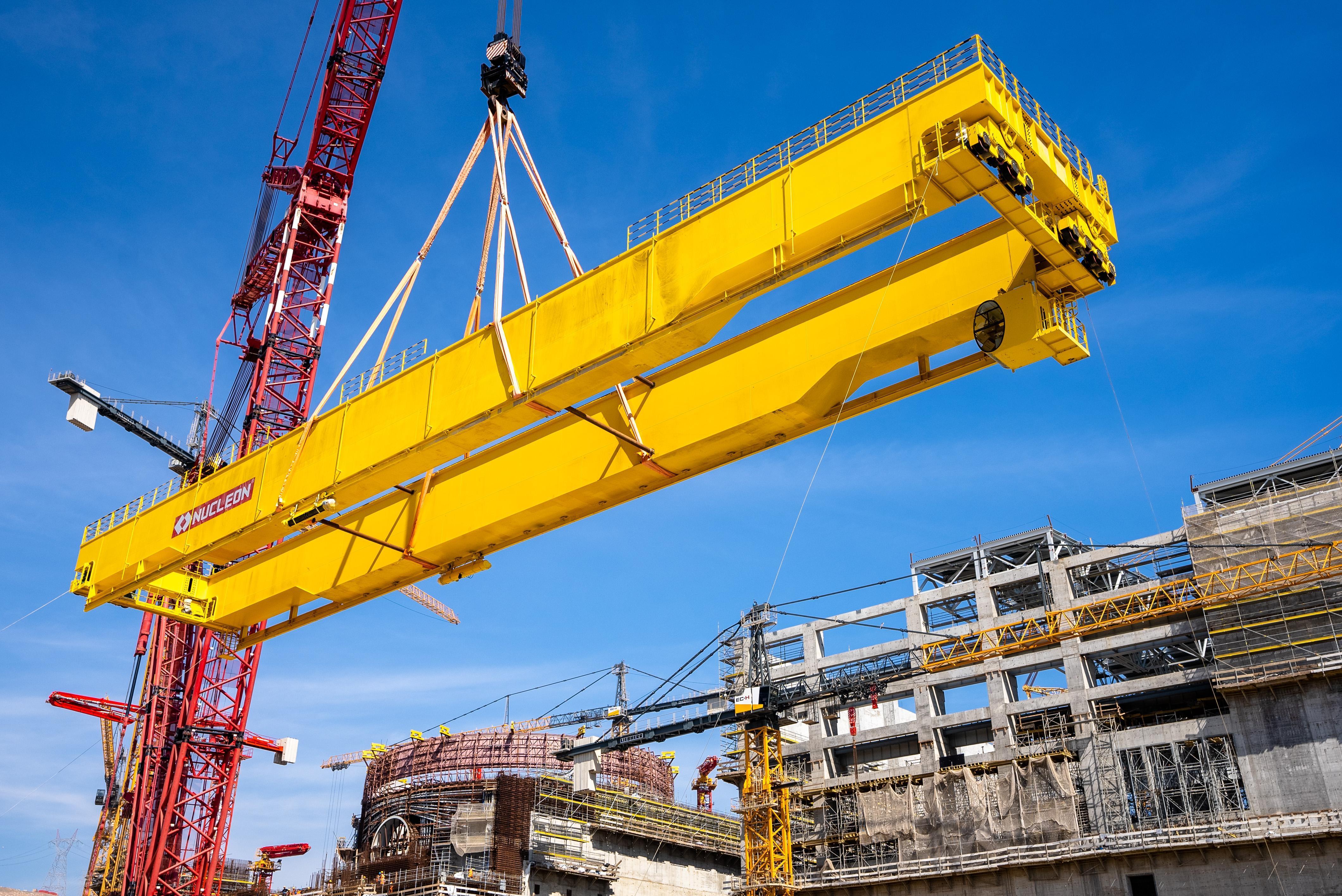 MERSİN, (DHA)- Rusya Devlet Nükleer Enerji Kuruluşu Rosatom tarafından Mersin’de inşa edilen Akkuyu Nükleer Güç Santrali’nin (NGS) 2’nci Güç Ünitesinin türbin binasına 350 ve 15 ton kaldırma kapasiteli iki köprülü gezer vincin kurulumu tamamlandı. Vinçler, Liebherr LR13000 vinç yardımıyla üstü henüz kapatılmamış çatıdaki inşaat ve montaj çalışmaları yürütülürken kuruldu. Türbin binasına toplam üç gezer köprülü vinç kurulacak.