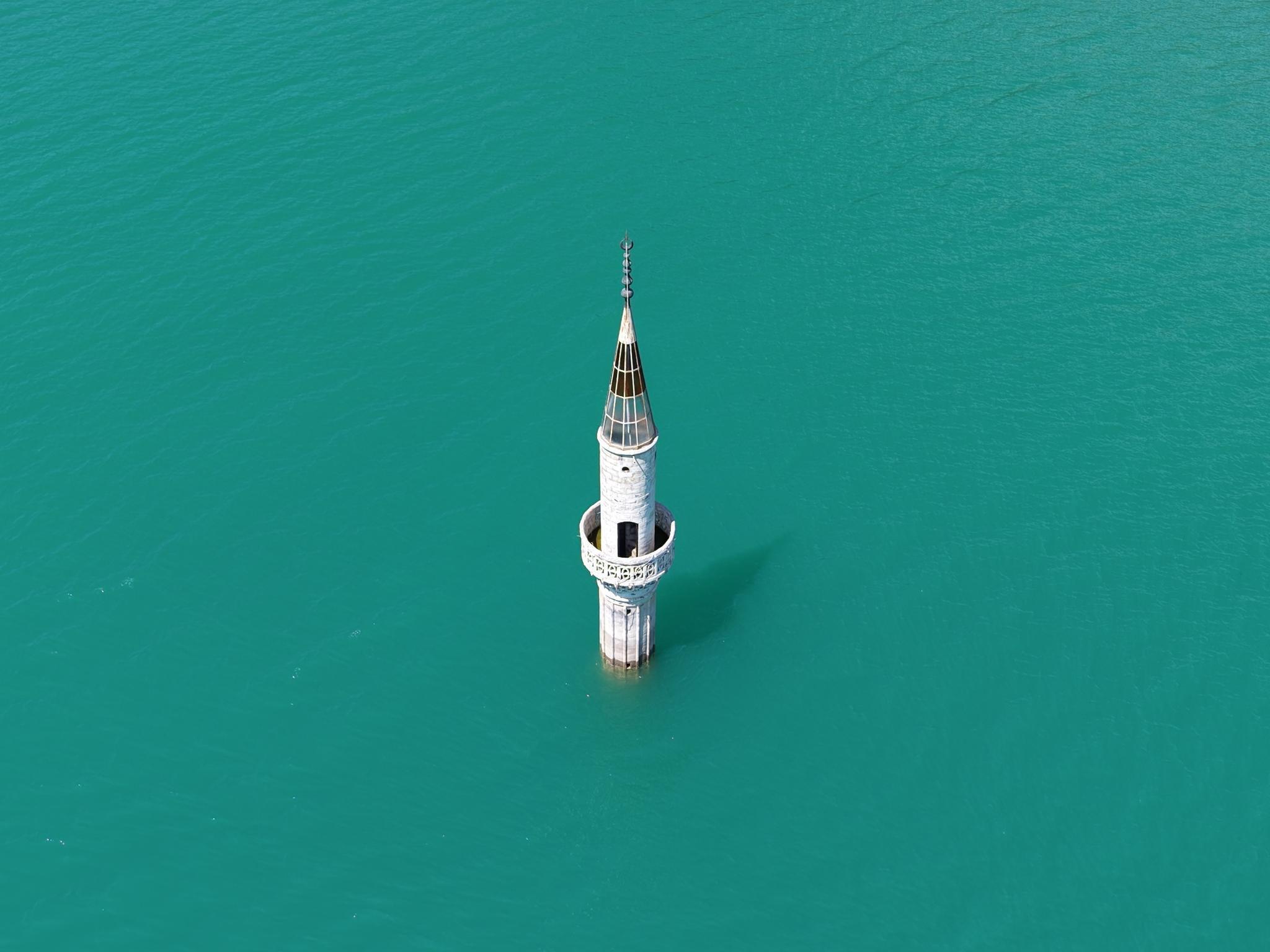 Baraj doldu, eski mahalleden geriye sadece minarenin bir bölümü kaldı