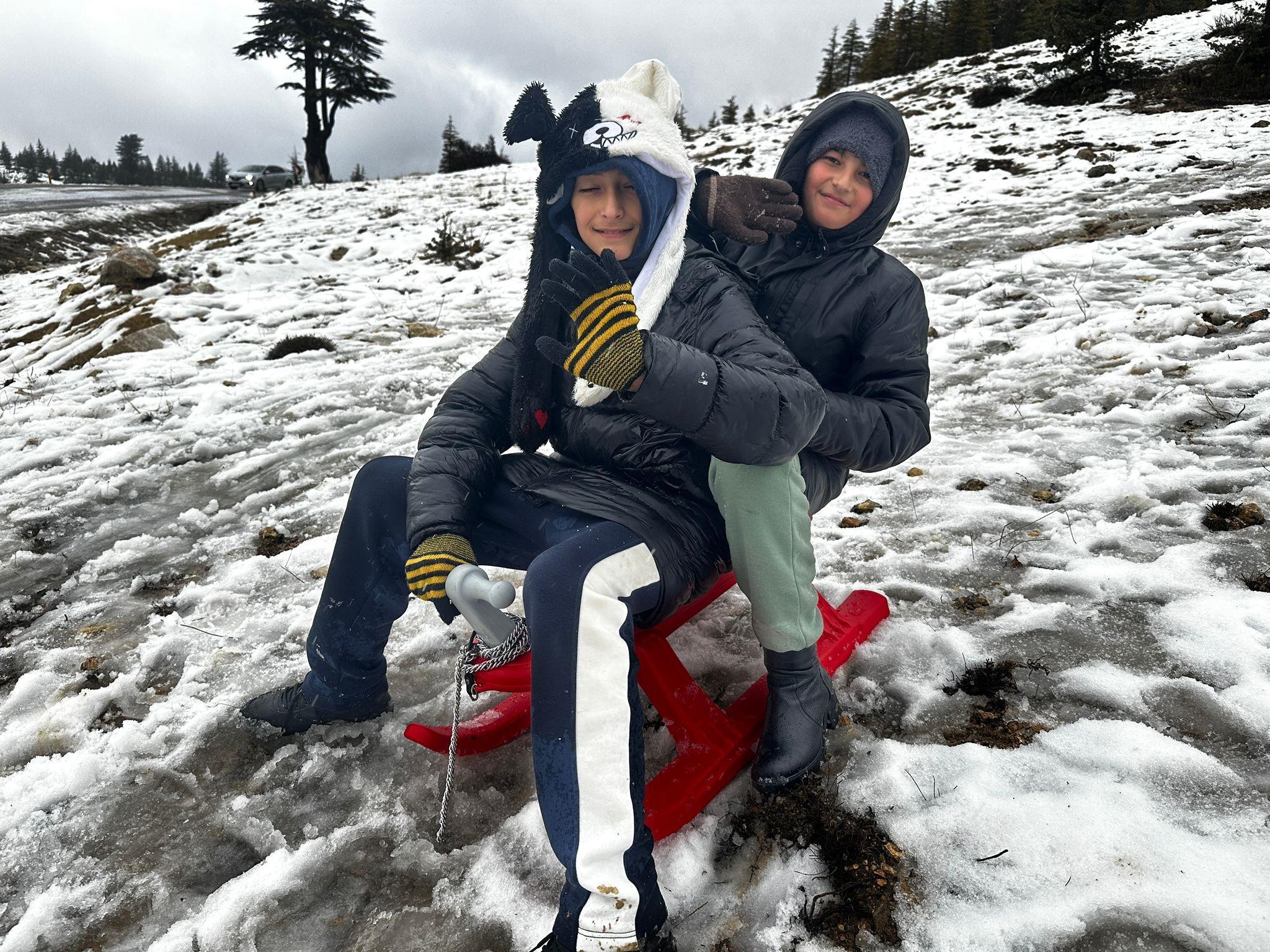 Mehmet DOĞANER/ERDEMLİ, (Mersin), (DHA)- MERSİN’in Erdemli ilçesinde yüksek kesimlerde etkili olan kar yağışı hem vatandaşlar hem de çocuklar tarafından sevinçle karşılandı. Çocuklar, Toros Dağları’nın eteklerini beyaza bürüyen karda oyunlar oynadı.