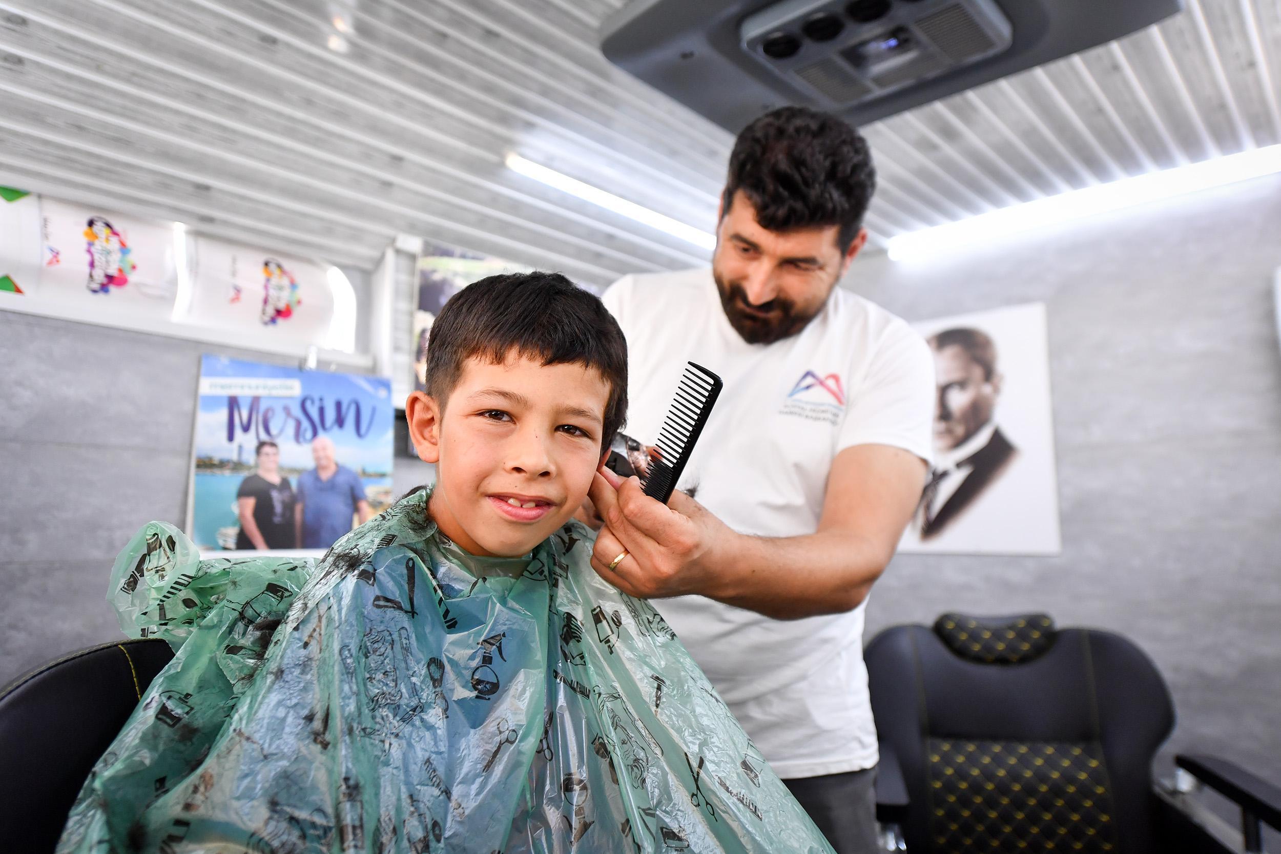 MERSİN, (DHA)-MERSİN Büyükşehir Belediyesi’nin özellikle kırsal ve dezavantajlı mahallelerde yaşayan, berber ve kuaför hizmeti alamayan vatandaşların ayağına giderek, bu ihtiyaçlarını karşıladığı mobil kuaför aracı son olarak Erdemli ilçesinde hizmet verdi