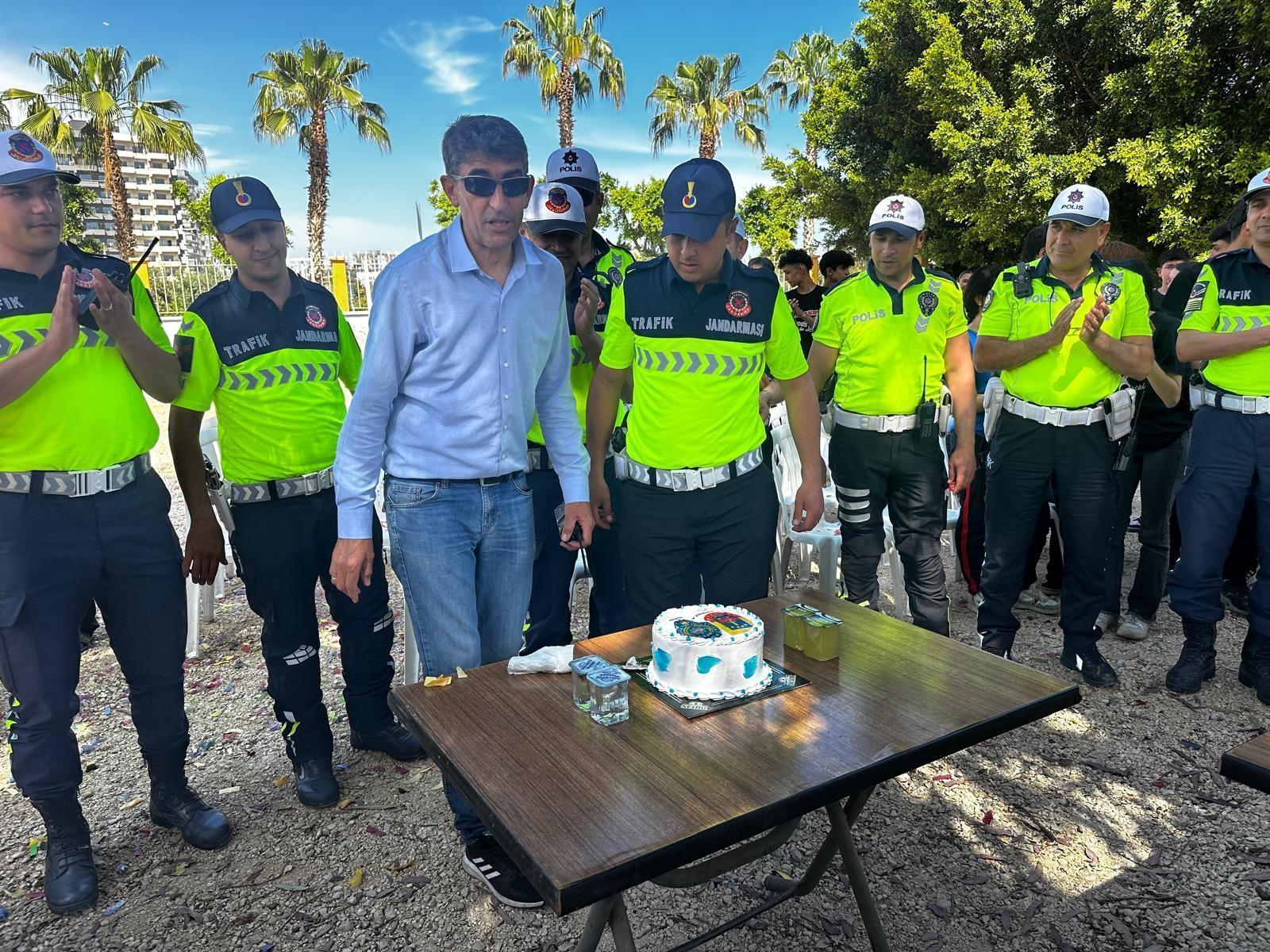 Erdemli İlçe Emniyet Müdürlüğü Trafik Büro Amirliği’nde görevli başpolis Müslüm Kara ise yapılan sürpriz karşısında duygulandıklarını belirterek, öğrencilere ve şoförlere teşekkür etti. (DHA)