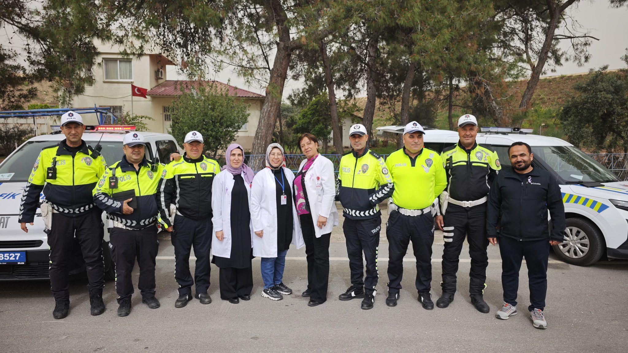 Mehmet DOĞANER/ERDEMLİ(Mersin)(DHA) -MERSİN'in Erdemli İlçe Emniyet Müdürlüğü Trafik Şube Amirliği ile İlçe Sağlık Müdürlüğü Sağlıklı Hayat Merkezi iş birliğinde düzenlenen etkinlikte yolculara kanserle ilgili bilgilendirme yapıldı.
