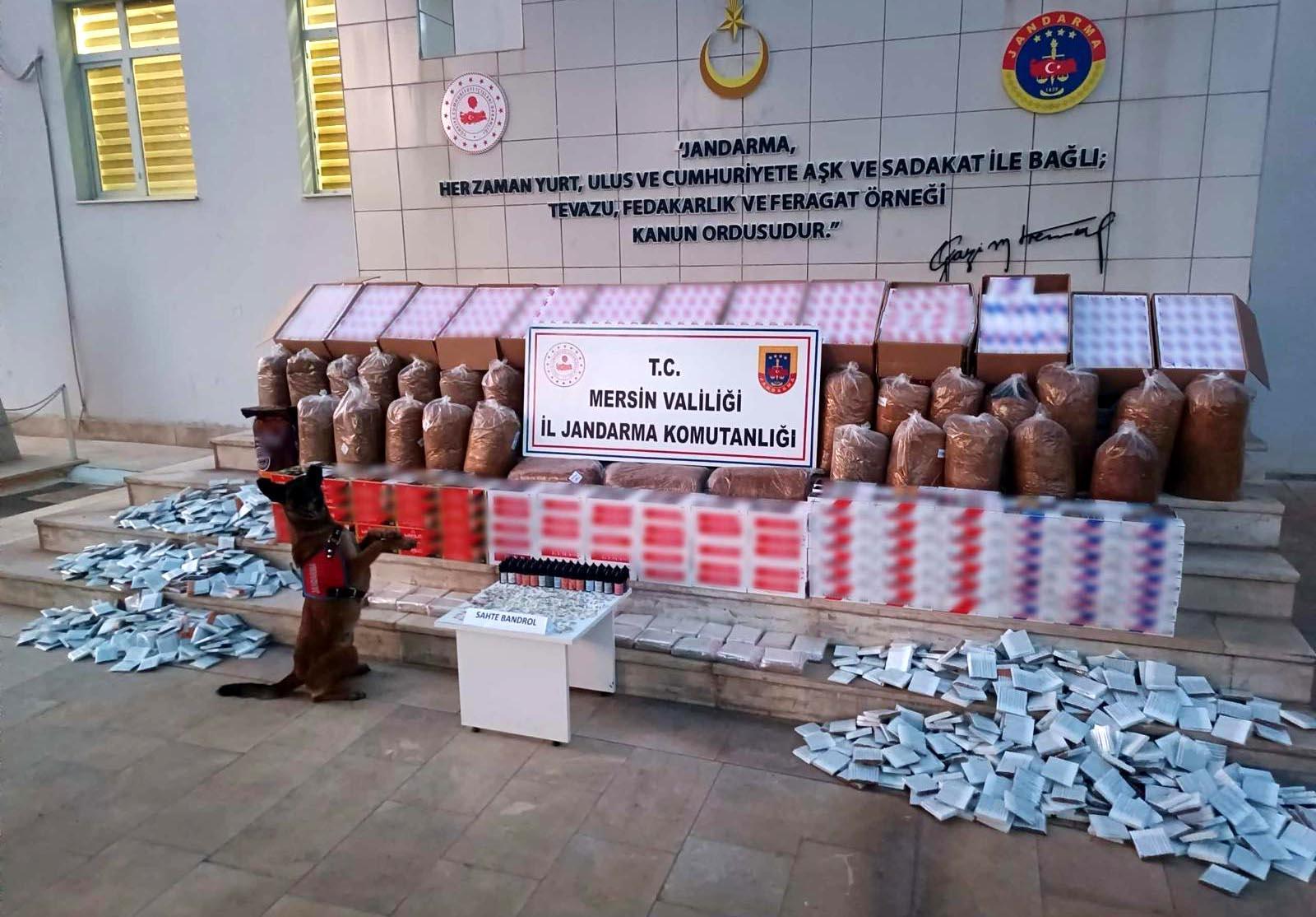 GÜLNAR(Mersin), (DHA)-MERSİN’in Gülnar ilçesinde düzenlenen operasyonda binlerce makaran, sahte bandrol, sigara sarma makinesi, sigara kitleri ele geçirirken 1kişi de gözaltına alındı.