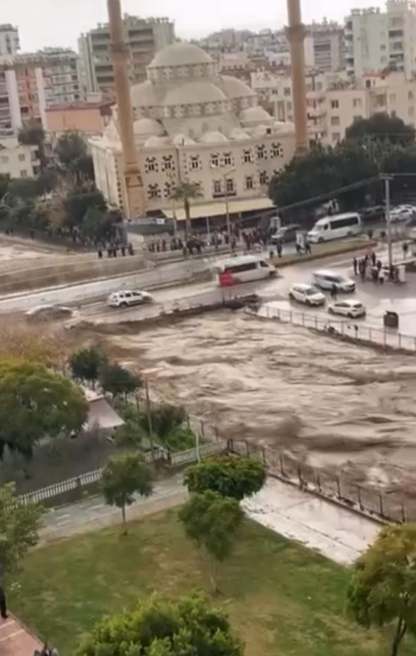 Mersin'de sağanak nedeniyle Mezitli Deresi’nin taşma anları kameralara yansıdı. Öte yandan, Tarsus ilçesine Çavuşlu Mahallesi'nde taş ev aşırı yağış nedeniyle yıkıldı. (DHA)