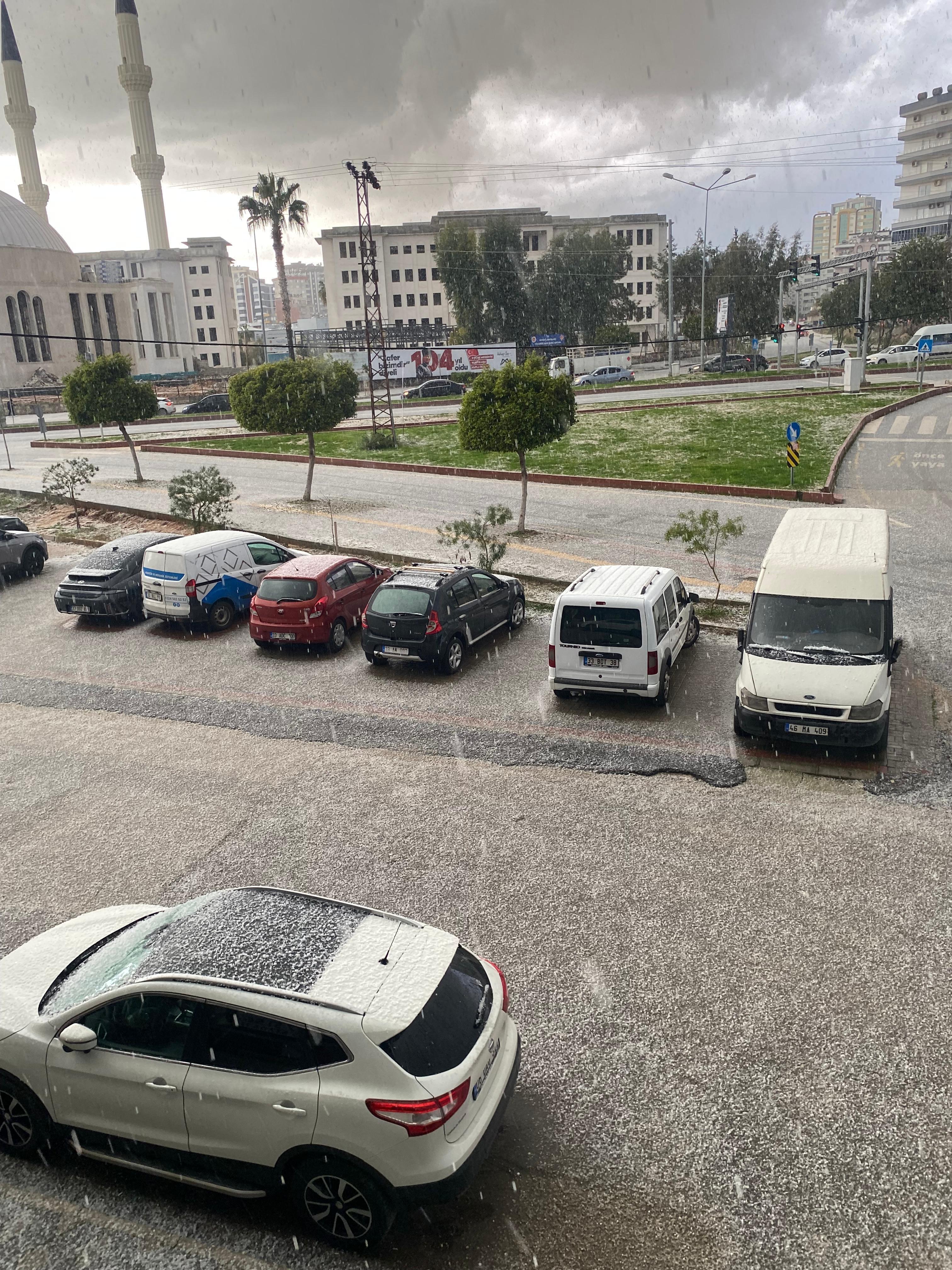 Soner AYDIN/MERSİN, (DHA)- MERSİN'de aniden etkili olan dolu yağışı yerleri beyaza bürüdü.