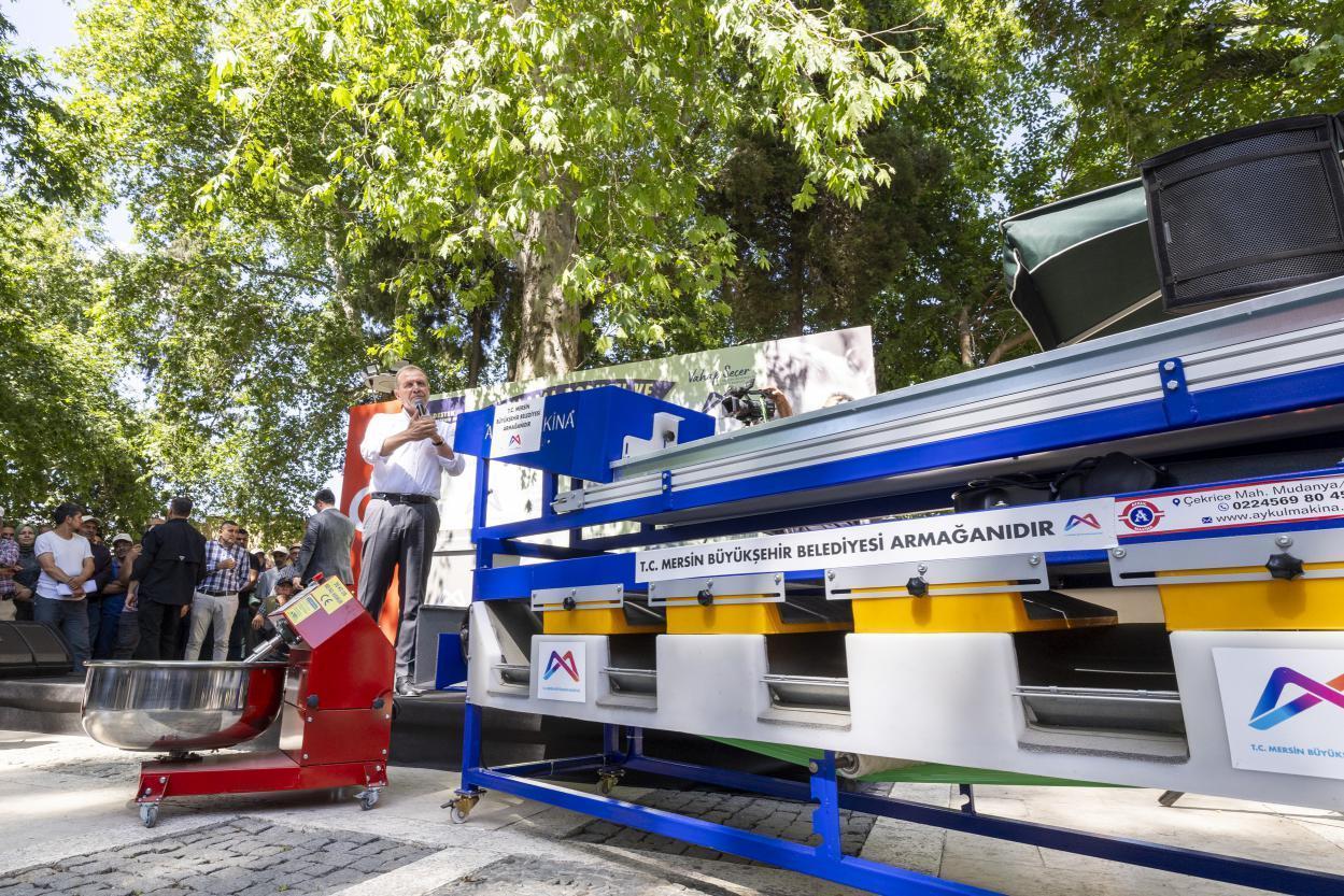 “Bugüne kadar Gülnar’a toplamda 44 adet makine ekipman desteği sağlamıştık, bugün de 6 mahalleye 6 adet makine ekipman desteği yapacağız. Bunlardan bir tanesi zeytin boylama makinesi, 5 tanesi hamur yoğurma makinesi. Yine Gülnar’ımıza bugüne kadar 12 bin 800 metre sulama borusu desteği yaptık, bugün de 5 mahalleye 6 bin 352 metre sulama borusu desteğini sağlayacağız.”