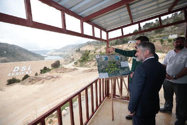 Atike CEYLAN KAÇAR/SİLİFKE(Mersin), (DHA)-MERSİN'i bulunan Hazine ve Maliye Bakanı Nureddin Nebati, Silifke ilçesindeki, 10 bin futbol sahası büyüklüğünde 68 bin dekar araziyi sulayacak Aksıfat Barajı'nda incelemelerde bulunarak yetkililerden bilgi aldı.