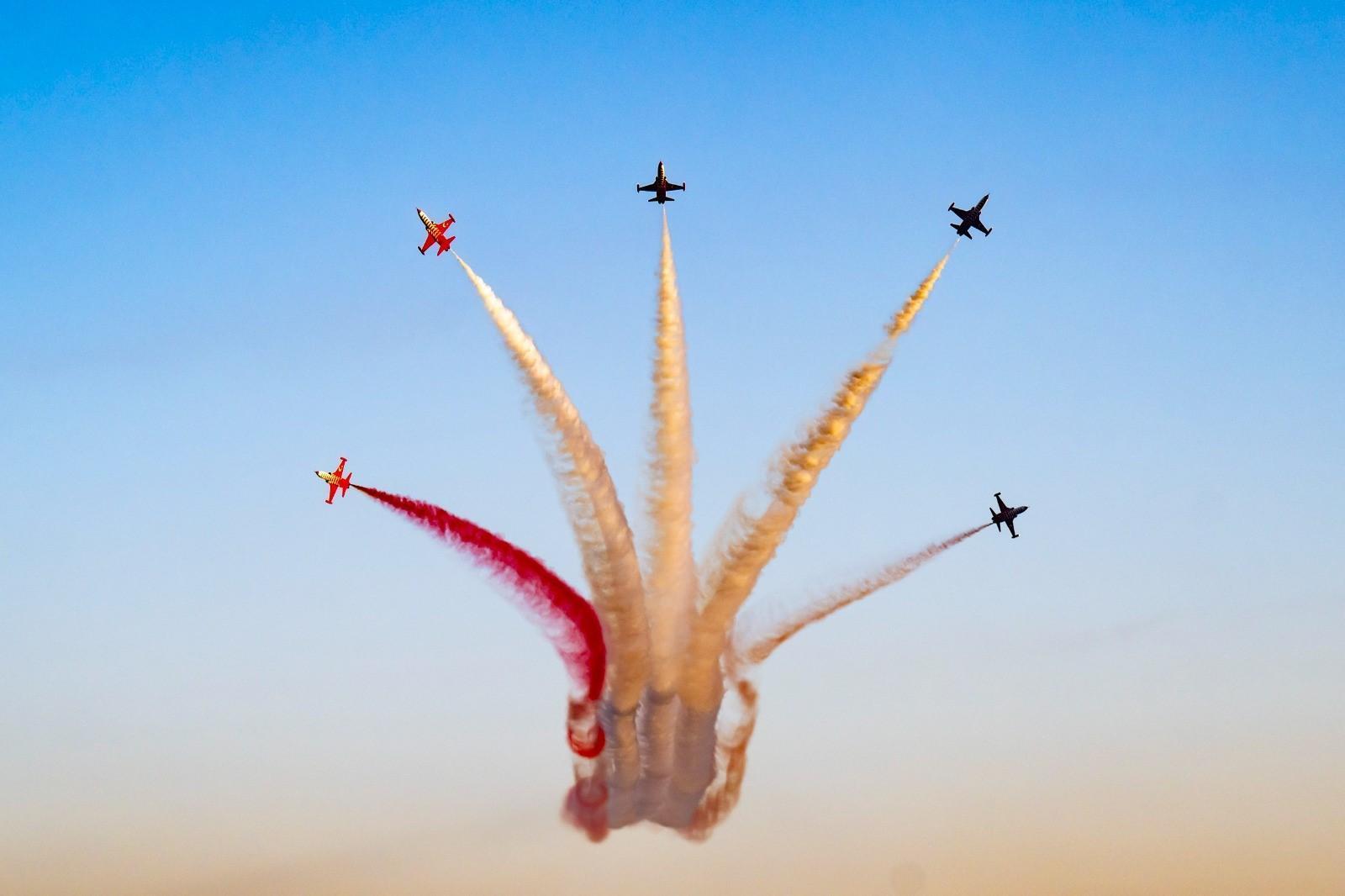 Mersin Valisi Atilla Toros ile Mersin Büyükşehir Belediye Başkanı Vahap Seçer, milletvekilleri ilçe belediye başkanlarının izlediği gösteride Türk Yıldızları, gökyüzünde görsel bir şölen oluşturdu. Türk Yıldızları gösteri sırasında, gökyüzünde renkli duman izleri gerçekleştirdiği hareketleri izleyen vatandaşlar cep telefonları, video kameraları ve fotoğraf makineleri ile anı kayıt altına aldı. (DHA)