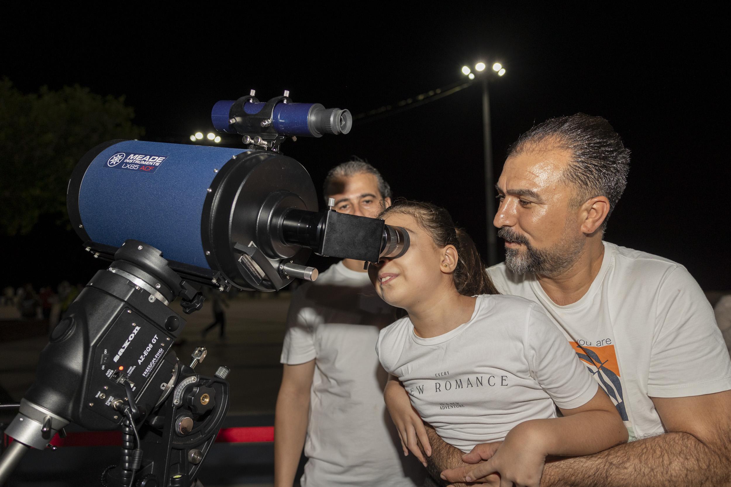 MERSİN, (DHA)-BİRBİRİNDEN eşsiz gökyüzü olaylarına Mersinliler de tanık olsun diye, gece gözlem etkinlikleri düzenleyen Mersin Büyükşehir Belediyesi, “Tam Ay Tutulması’nı da unutmadı. Her yaştan yurttaş bu ana tanık olabilsin diye Özgecan Aslan Barış Meydanı’na teleskop kuran İklim Değişikliği ve Sıfır Atık Dairesi Başkanlığı, Tam Ay Tutulmasını gökyüzü tutkunlarına izlettirdi. Her yaştan katılımcıya eğitici ve eğlenceli etkinlikler de sunan Büyükşehir ekipleri, keyifli bir geceye daha imza attı.