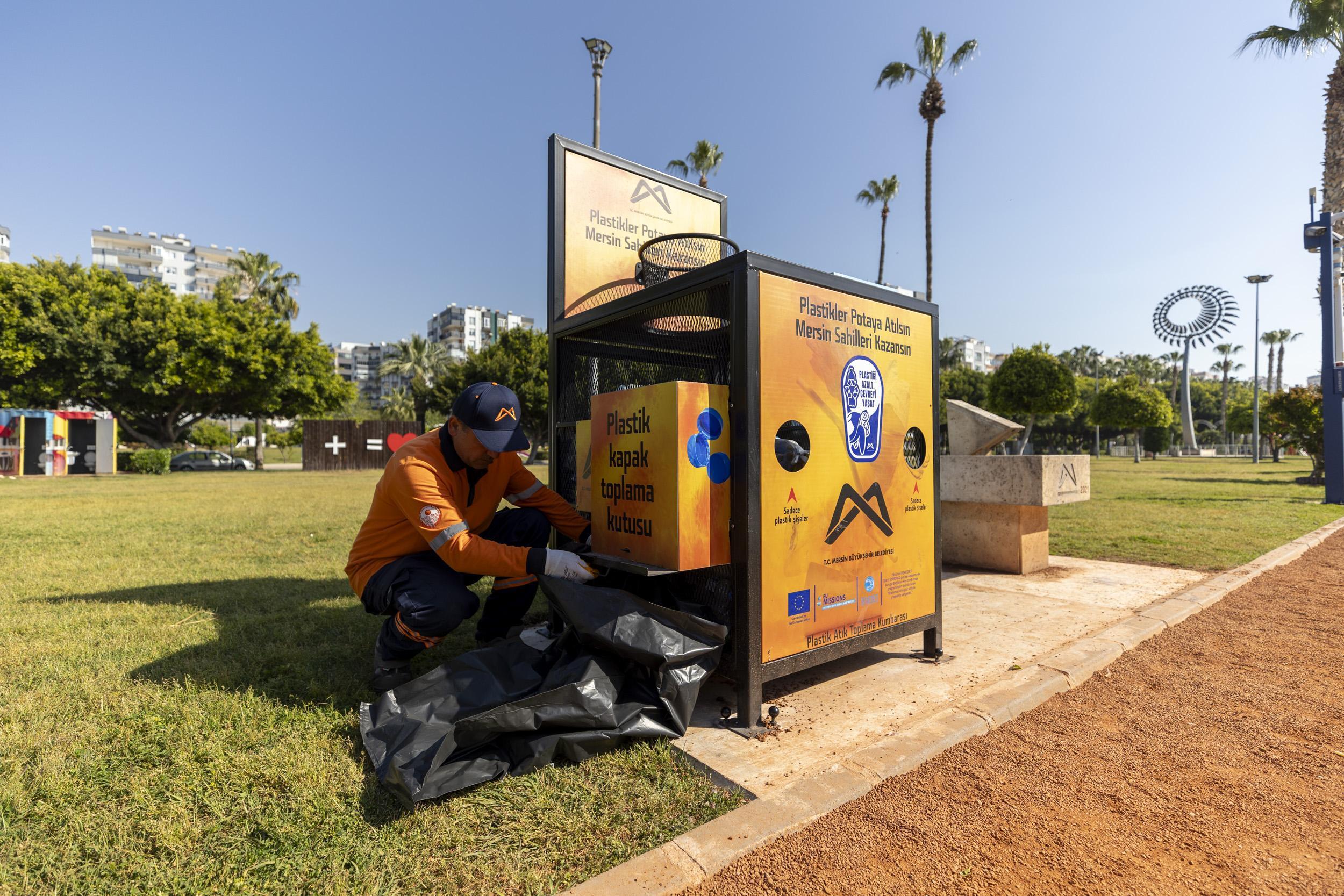 Mustafa ERCAN/MERSİN, (DHA)-MERSİN Büyükşehir Belediyesi; İklim Değişikliği ve Sıfır Atık Dairesi Başkanlığı koordinesinde, kent genelinde plastik kullanımını azaltmak ve sıfır atık bilincini yaygınlaştırmak amacıyla çalışmalarına devam ediyor. Bu kapsamda Avrupa Birliği (AB) tarafından finanse edilen REMEDIES-2 programı ile hibe almaya hak kazandığı ‘Plastiksiz Mersin Sahilleri İçin Birleşiyoruz’ projesini hayata geçiren Büyükşehir, Adnan Menderes sahil şeridinde belirlenen alanlara 6 adet içme suyu çeşmesi ve 6 adet plastik toplama kumbarası yerleştirdi.