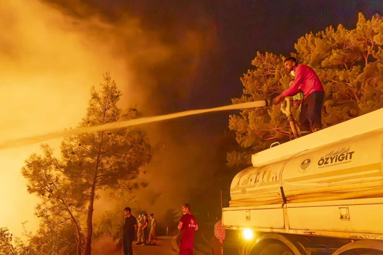 MERSİN, (DHA)-MERSİN’in Silifke ilçesinde dün öğle saatlerinde Balandız ve Kırtıl mahalleleri çevresinde çıkan orman yangınlarını söndürme çalışmalarına destek veren Yenişehir Belediyesi, Afet İşleri Müdürlüğüne bağlı arama kurtarma ekipleri ve arazözlerle çalışmalara katıldı.