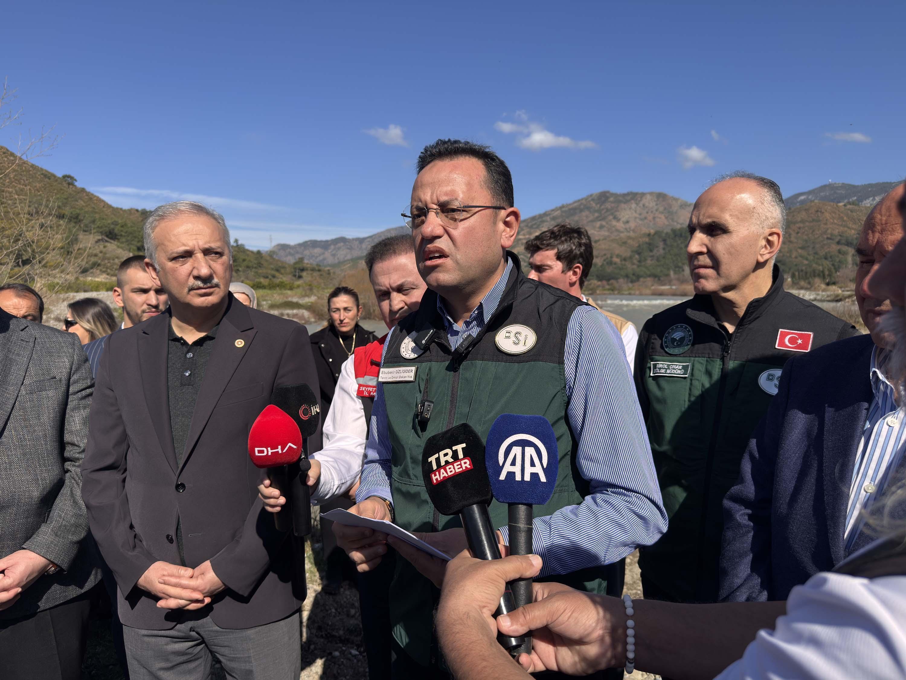 Ebubekir Gizligider'e, AK Parti Muğla milletvekilleri Kadem Mete, Yakup Otgöz, DSİ Genel Müdürü Mehmet Akif Balta ve daire müdürü eşlik etti. (DHA)
