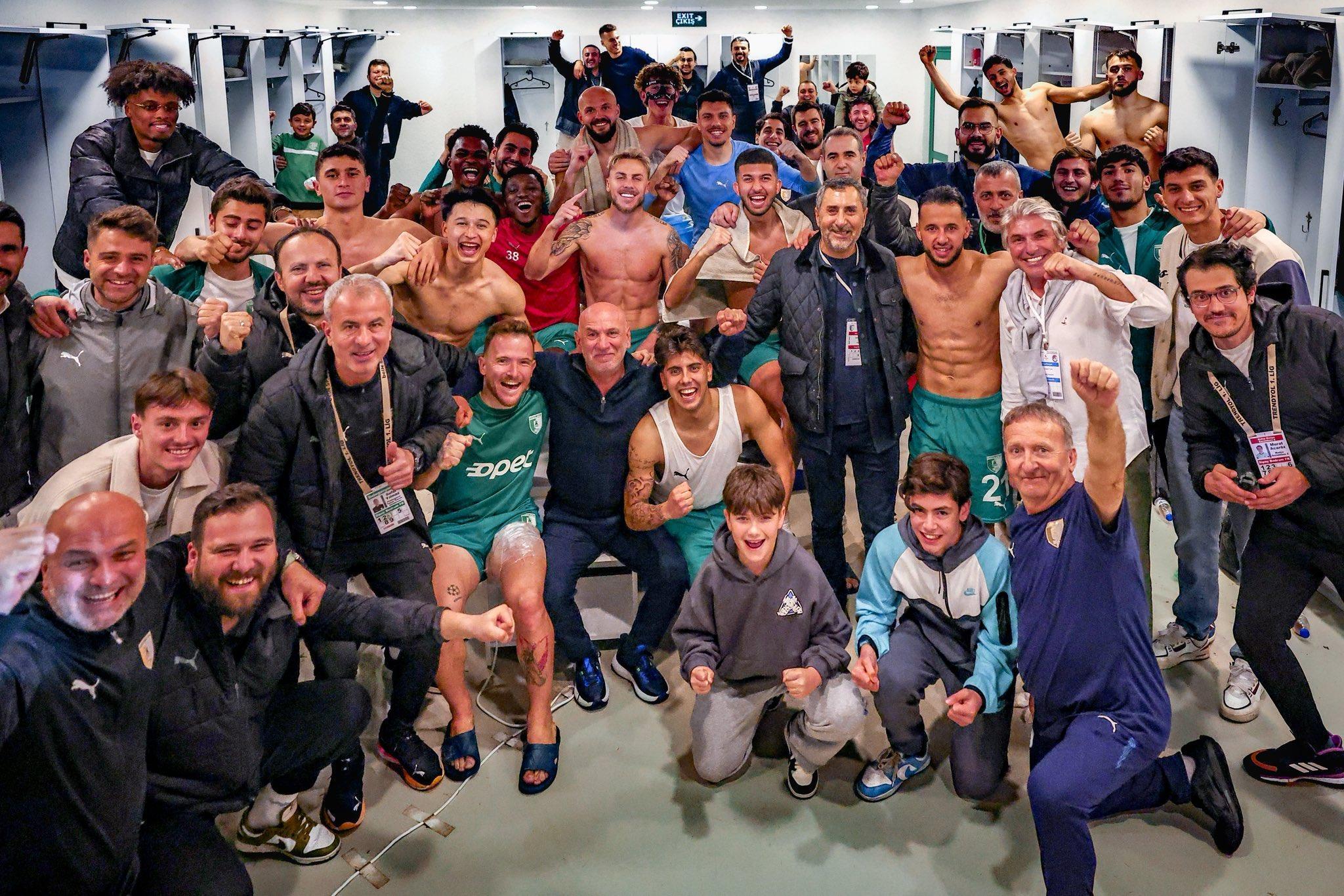 BODRUM, (DHA)- 1'inci Lig 25'inci hafta maçında evinde Ankara Keçiörengücü'nü 4-3 mağlup eden Bodrum Futbol Kulübü 4'te 4 yaparak Süper Lig iddiasını sürdürdü. Bu maçtan önce Sakaryaspor (D), Serikspor ve Adana Demirspor'u (D) gol yemeden mağlup eden yeşil-beyazlılar, Başkent temsilcisini de geçerek 45 puana yükseldi. Bu sezon yaşadığı yönetim değişiklikleri, ara transferde önemli yabancılarını kaybetmesi ve Teknik Direktör Burhan Eşer'in 6 ay hak mahrumiyeti almasına rağmen çıkışını sürdürüp Play-Off hattından hiç kopmayan Bodrum FK 14 Şubat Sevgililer Günü'nde taraftarına en güzel hediyeyi verdi. Bodrum ekibi sosyal medyada takımın galibiyet sevincini, "Sevgililer günü bir gün seviyoruz seni her gün" mesajıyla paylaştı.