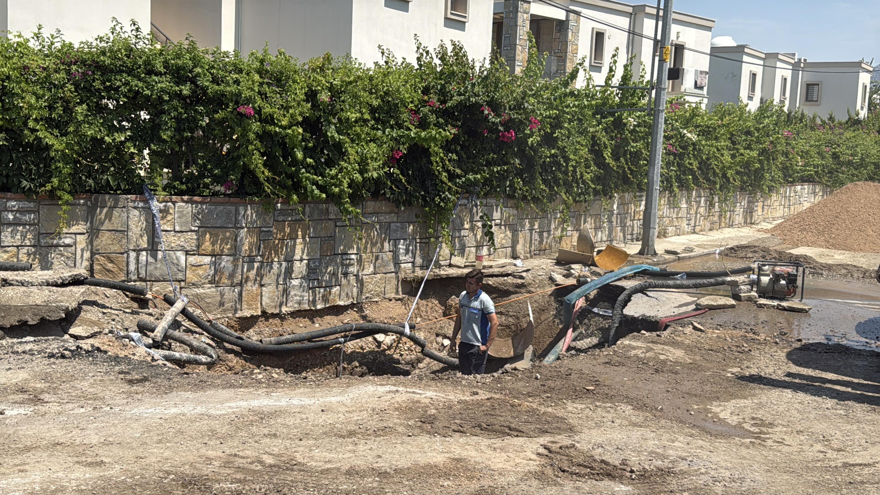 Fırat AKAY/BODRUM (Muğla), (DHA)- MUĞLA'nın Bodrum ilçesinde ana su isale hattı patladı, yarılan asfalt nedeniyle yol trafiğe kapandı.
