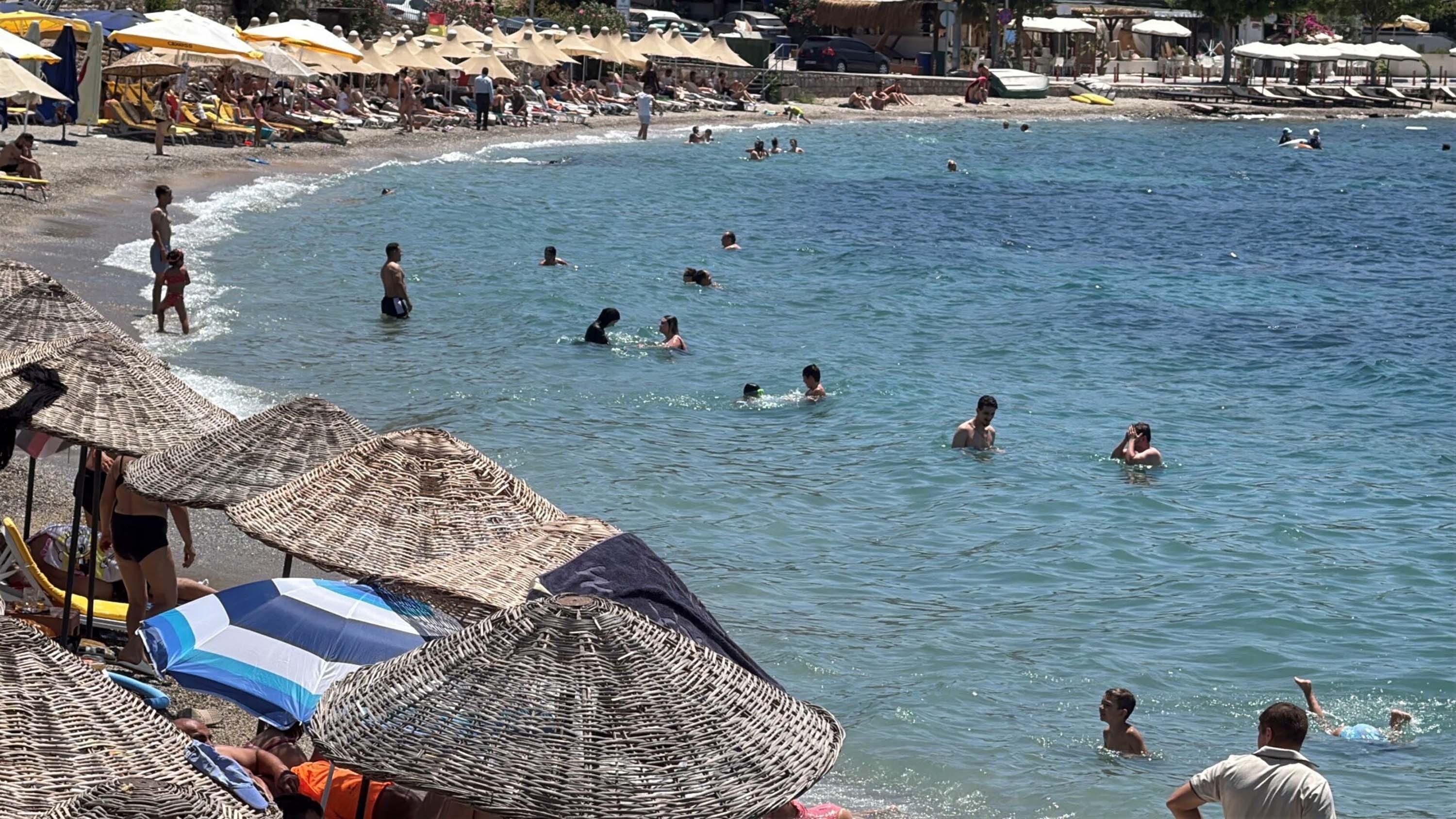 Bodrum’da hissedilen hava sıcaklığı 36 dereceye ulaştı, sahillerde yoğunluk oluştu