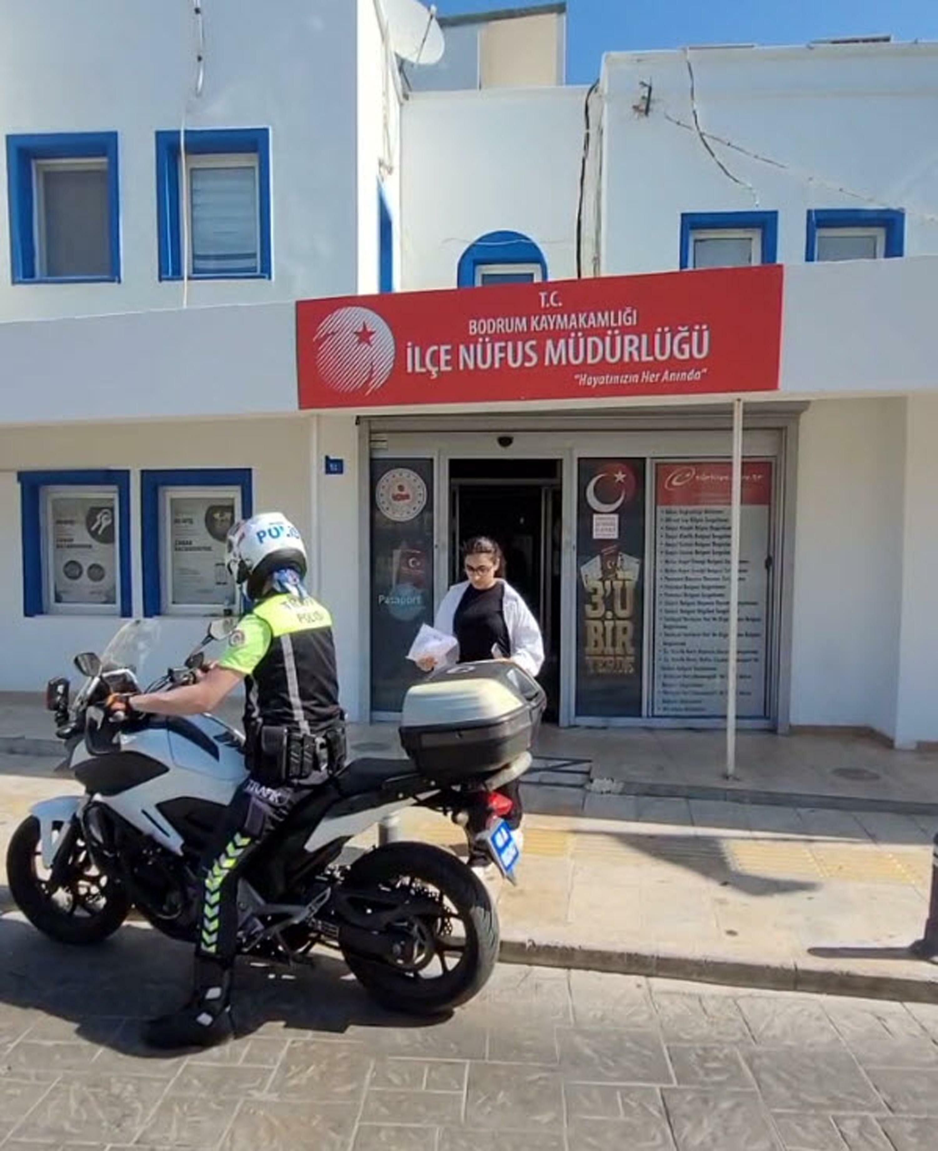 Fırat AKAY/BODRUM,(Muğla), (DHA)- MUĞLA'nın Bodrum ilçesinde, Yükseköğretim Kurumları Sınavı'nın (YKS) ikinci oturumu Alan Yeterlilik Sınavı'na (AYT) girecek adaylardan Ceylan K., kimliğini evde unuttu. İlçe Nüfus Müdürlüğü'nden kimlik belgesi çıkarılan Ceylan K.'yi sınava motosikletli trafik polisi yetiştirdi.