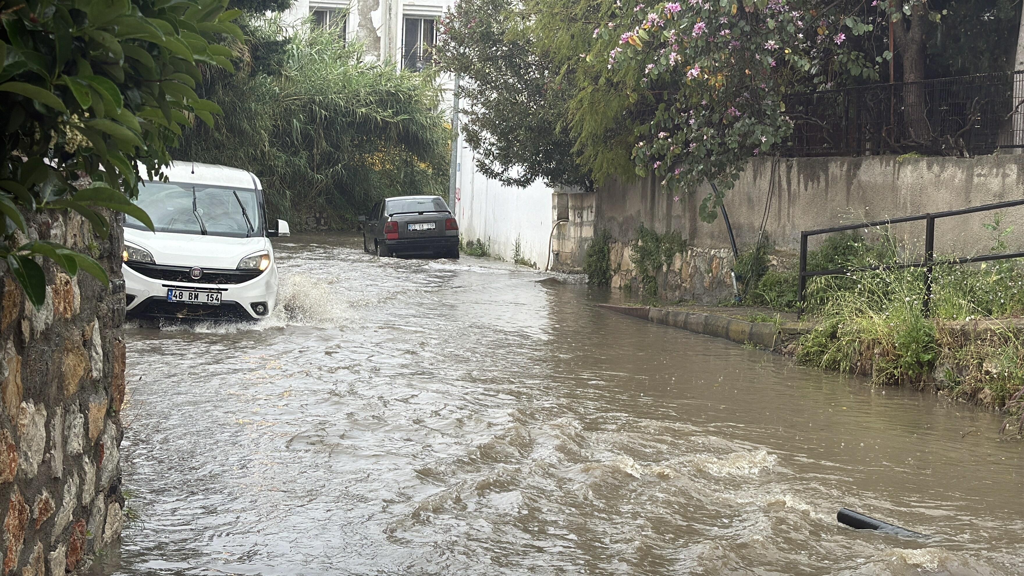 Meteoroloji 4’üncü Bölge Müdürlüğü’nün Muğla ve çevresi için yaptığı sağanak uyarısının ardından Bodrum'da öğle saatlerinde yağış başladı. Sağanak nedeniyle sürücüler zor anlar yaşatırken, derelerin debisi yükseldi. Gümbet Mahallesi'nde 4 araç derede kaldı. Sürücüler araçlarına ulaşamadı. Belediye ekiplerince dereye giden yollar şeritle kapatıldı. Mazgallar tıkanırken, sel suları nedeniyle denizin rengi kahverengiye dönüştü.
