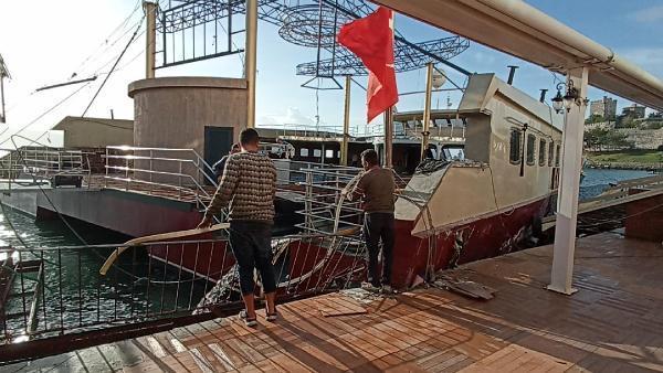 Karaya oturan yüzen disko için, bugün sabah saatlerinden itibaren su tahliye çalışması başlatıldı. Su tahliyesinin ardından yüzen diskonun tonozdan koptuğu yere çekileceği belirtildi. Hasarın meydana geldiği işletme ise temizlik çalışması yaptı. Çarpmanın etkisiyle tenteleri yıkılan işletme sahibi Hacer Soysal, "Dünkü fırtınadan tonozlar kopunca yüzen disko karaya vurdu. Hasarımız büyük. Karşı tarafta da aynı şekilde hasar var. Olay anında burada kimse yoktu. Çarpmanın etkisiyle tenteler ve iskelemiz büyük çapta hasar aldı" dedi. (DHA)