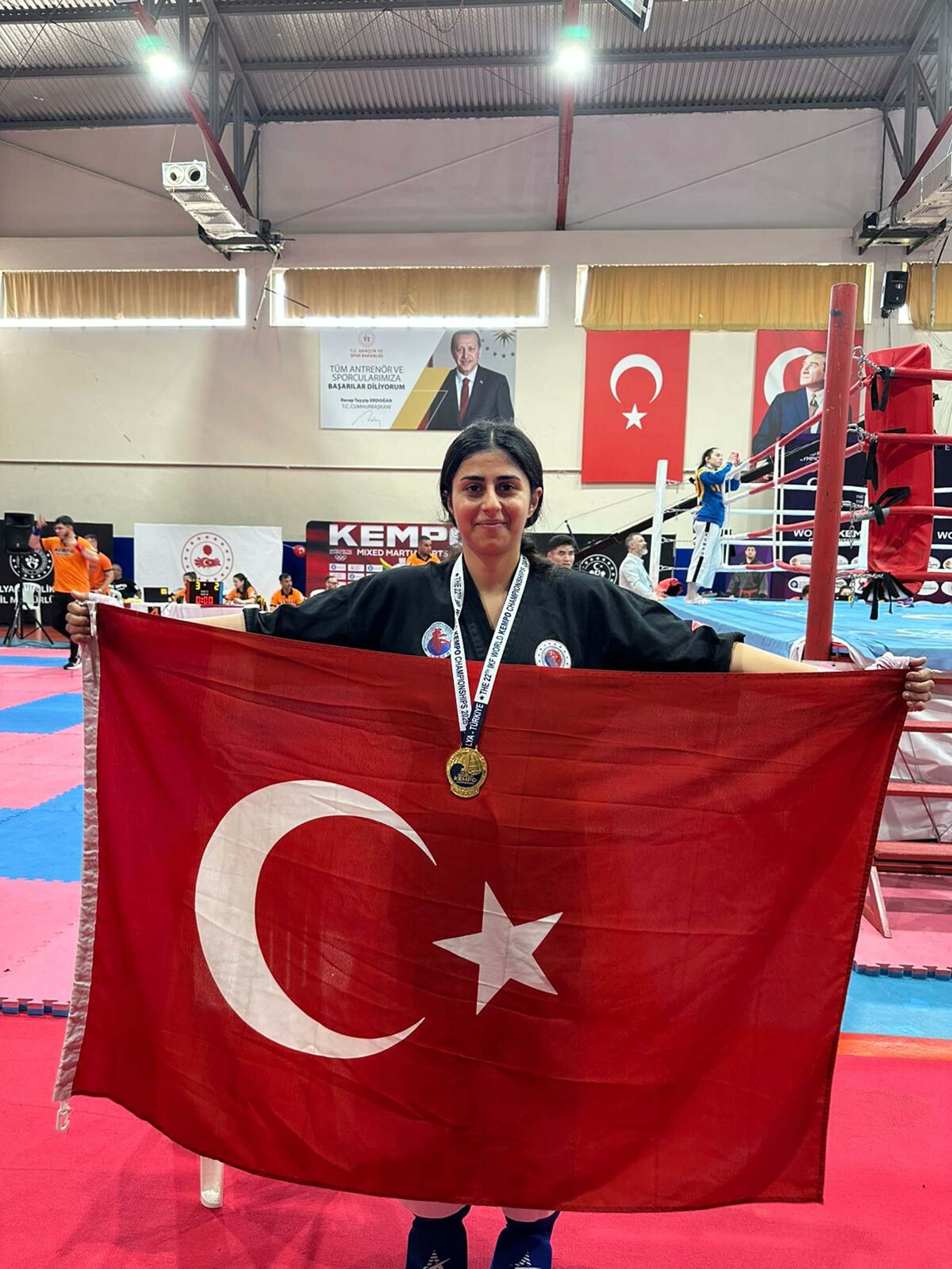 Fırat AKAY / BODRUM, (DHA)- ULUSLARARASI Kempo Federasyonu tarafından düzenlenen 22’nci Dünya Kempo Şampiyonası’nda mücadele eden Bodrumlu Sahra Çifçi, altın madalya kazanarak dünya şampiyonu oldu. Antalya’nın Kemer ilçesinde gerçekleştirilen organizasyonda 60 kilogram Semi-Kempo branşında genç sporcu, sergilediği üstün performansla rakiplerini geride bırakmayı başardı. Final müsabakasından galibiyetle ayrılarak kürsünün zirvesine yerleşen Çifçi, Türkiye’ye büyük bir gurur yaşattı. Dünya şampiyonu olan Sahra Çifçi’nin, Bodrum Ayşe Gülsevim Ali Rüştü Kaynak Anadolu Lisesi 12'nci sınıf öğrencisi olduğu belirtildi. Genç yeteneğin başarısı spor camiasında ve okulunda sevinçle karşılandı.