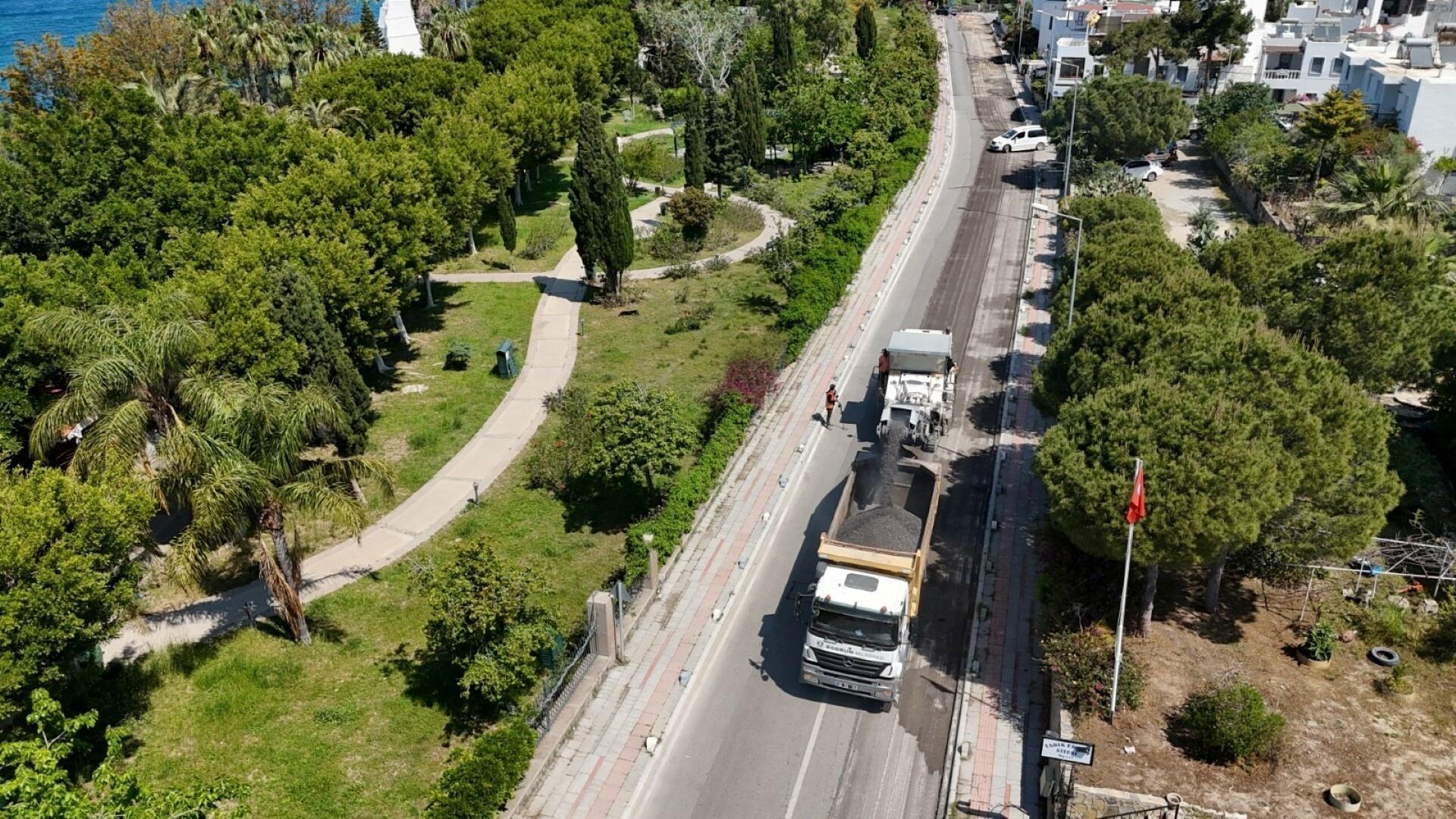 BODRUM (Muğla), (DHA)-MUĞLA'nın Bodrum ilçesi Turgutreis Mahallesi’ndeki 2.9 kilometrelik Turgutreis Mahallesi Gazi Mustafa Kemal Bulvarı, Büyükşehir Belediyesi ekipleri tarafından sıcak asfaltla kaplandı. Bodrum Belediyesi Fen İşleri Müdürlüğü ekipleri ise yoldaki yağmur suyu hattı, mazgal imalatı ve bordür yenileme ve onarım çalışmalarını sürdürüyor.