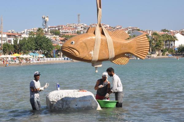 Datça'da denize dev orfoz balığı heykeli
