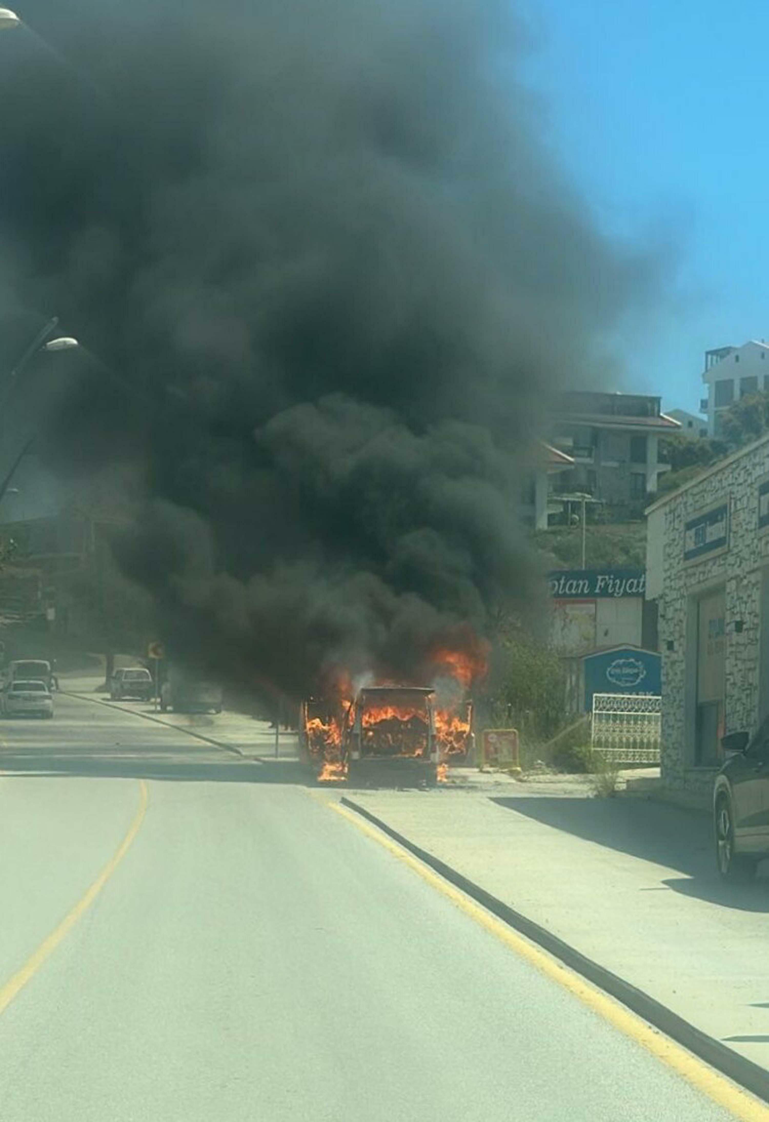 Datça İskele Mahallesi Kazım Yılmaz Caddesi'nde, park halindeki 34 DE 2531 plakalı hafif ticari araçta bugün öğlen saatlerinde yangın çıktı.