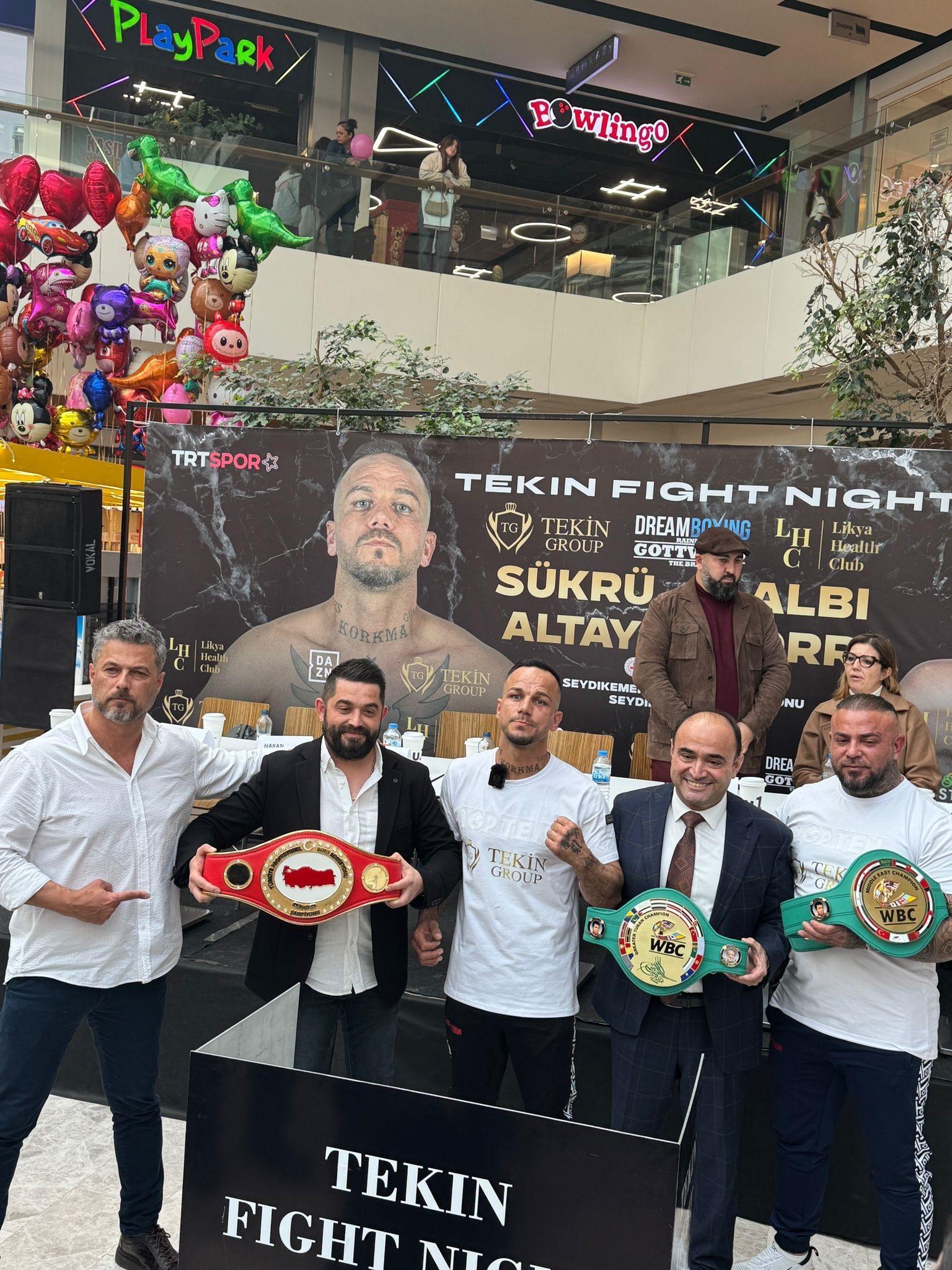 Muğla’nın Seydikemer ilçesinde gerçekleştirilecek organizasyon öncesinde, ‘Demir Yumruk’ lakaplı Şükrü Altay (40) ile Arnavut boksör Albi Sorra (36), Fethiye’de bir alışveriş merkezinde düzenlenen basın toplantısında karşı karşıya geldi. Toplantı, boksseverler ve basın mensuplarından yoğun ilgi gördü.