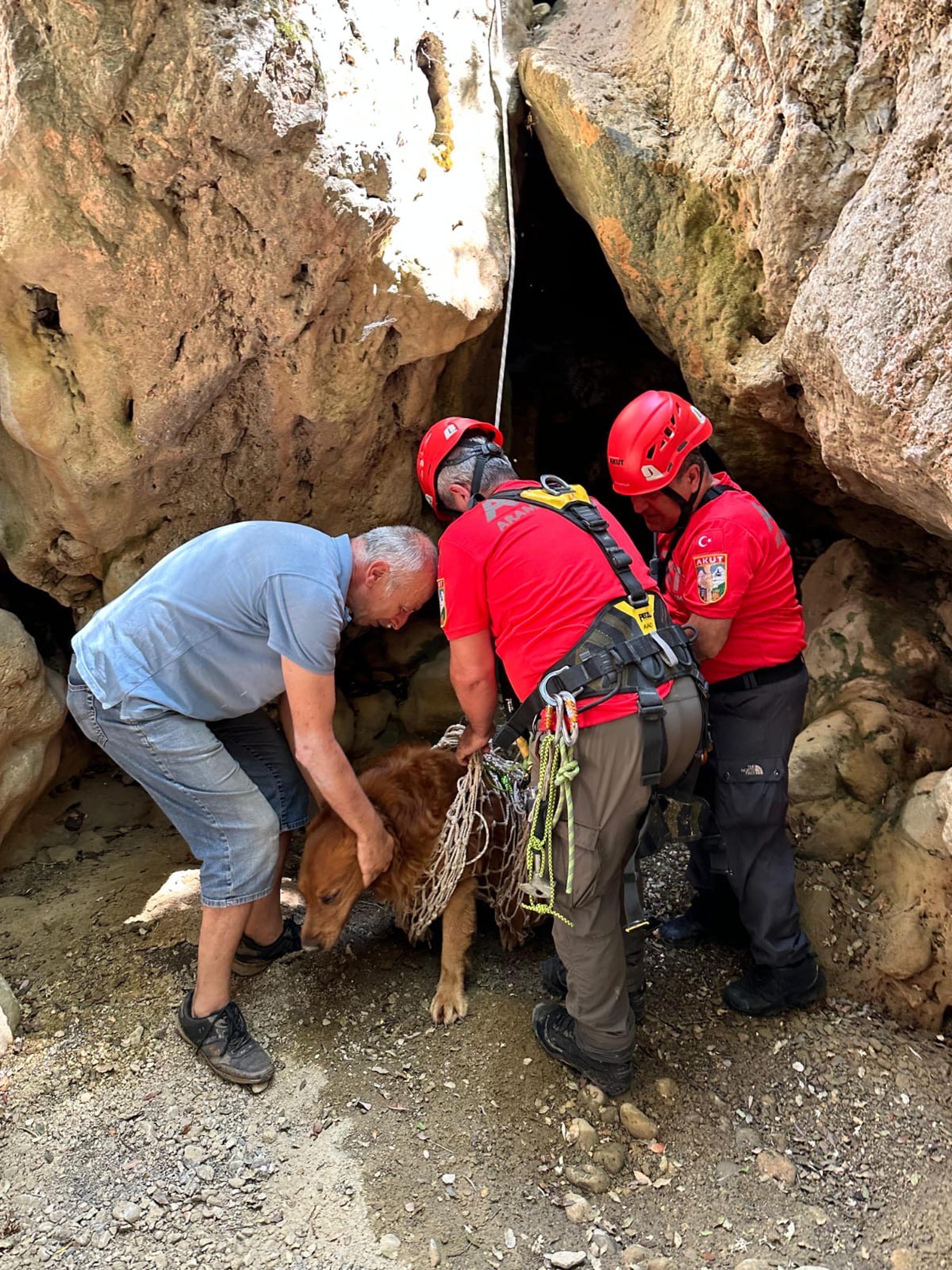 Dere yatağında mahsur kalan köpeği, AKUT ekibi kurtardı